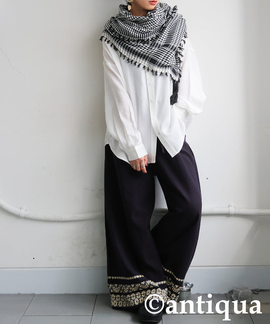 Floral Embroidered Wide-Leg Pants Ladies
