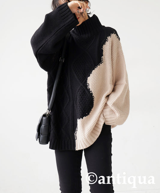 Bicolor waved high neck knit Ladies