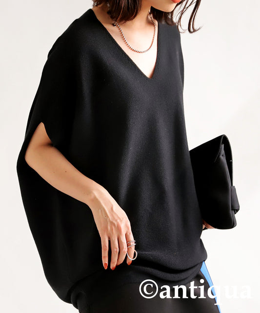 V neck cocoon Ladies knit tops plain