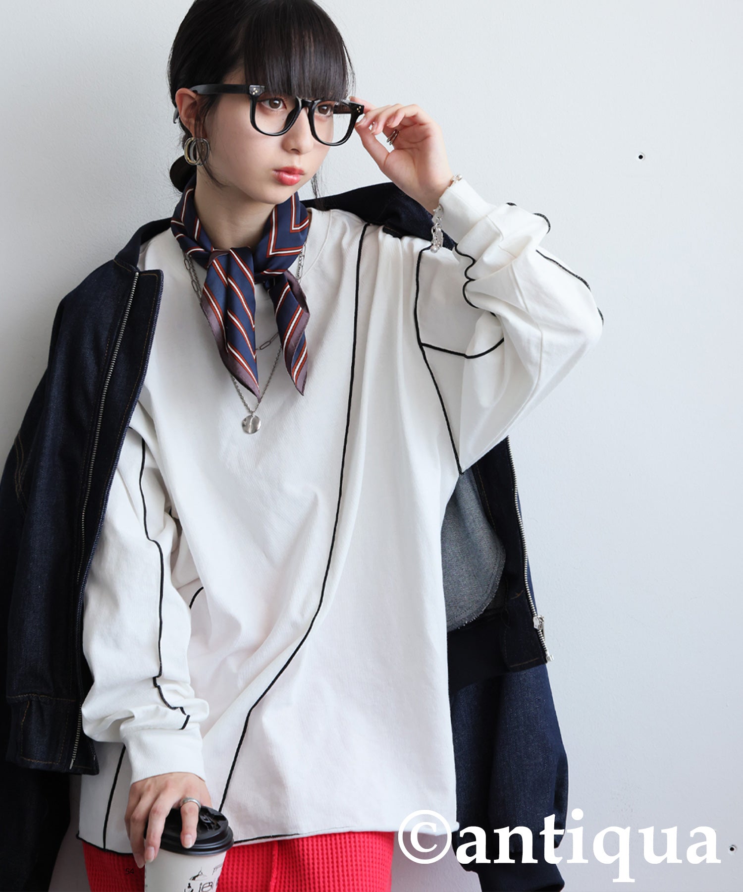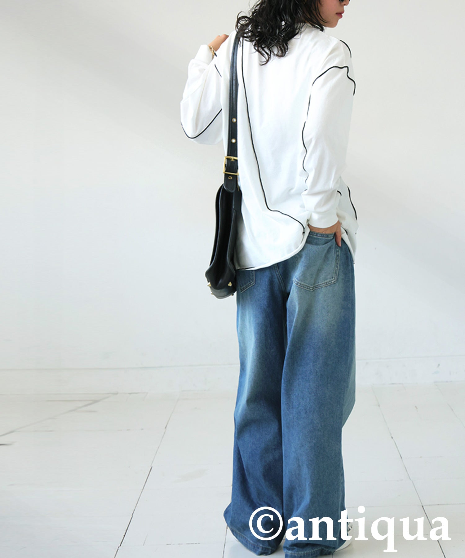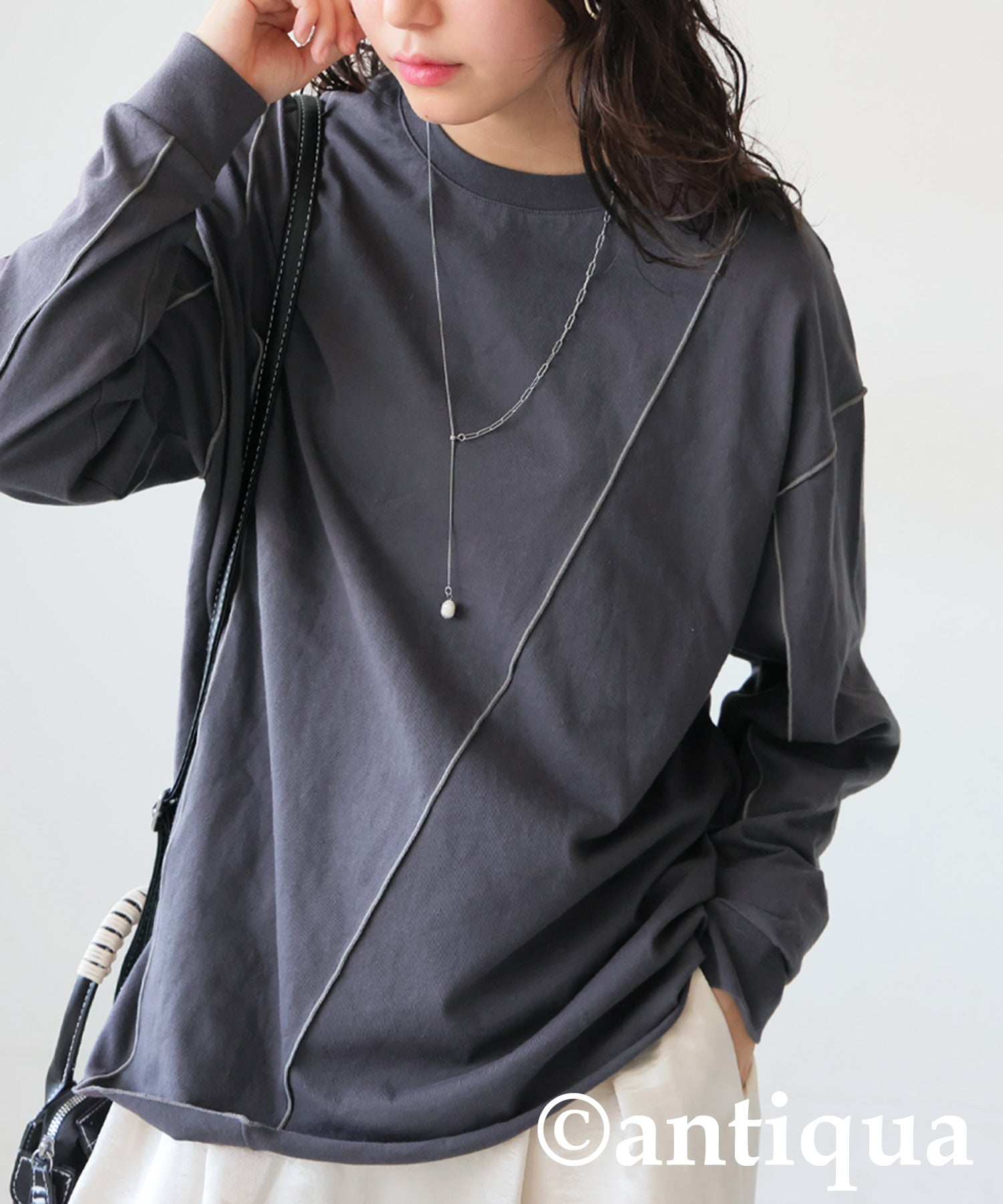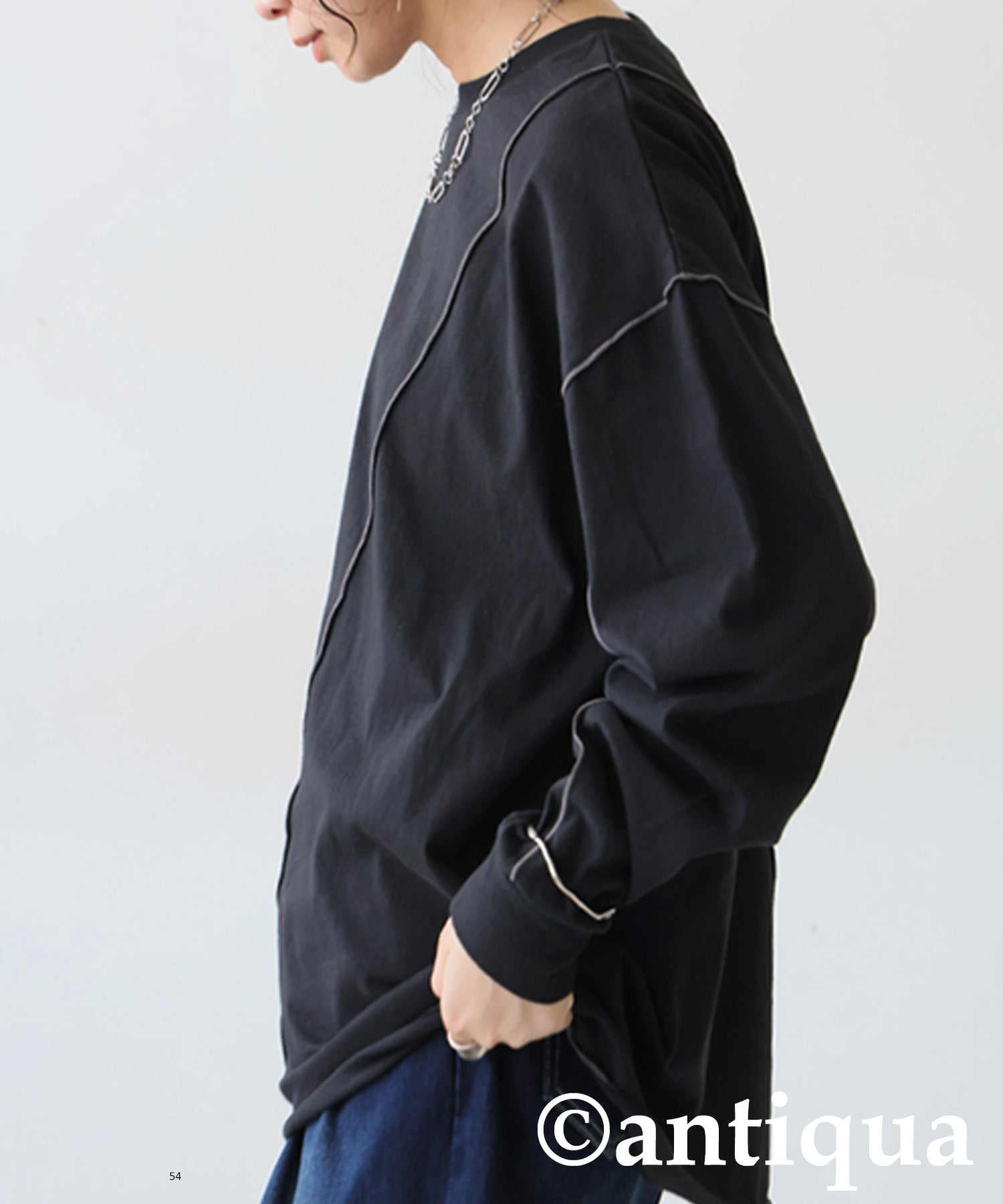 Color-Coordinated Mellow Stitch Long-Sleeved T-Shirt Ladies