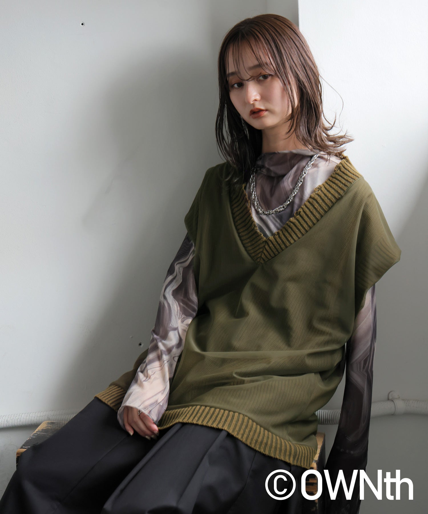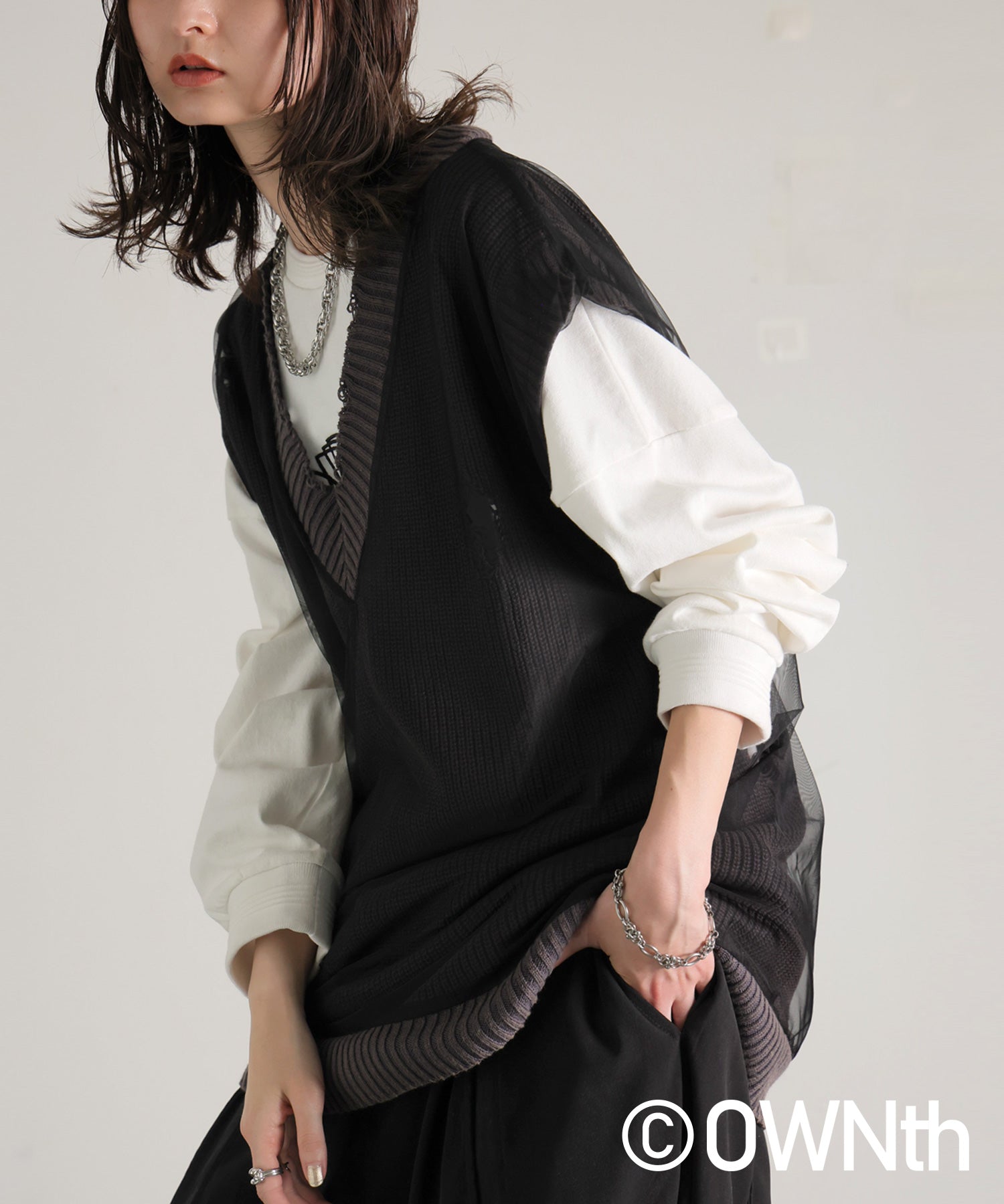OWNth Tulle Design Distressed Knit Vest Ladies