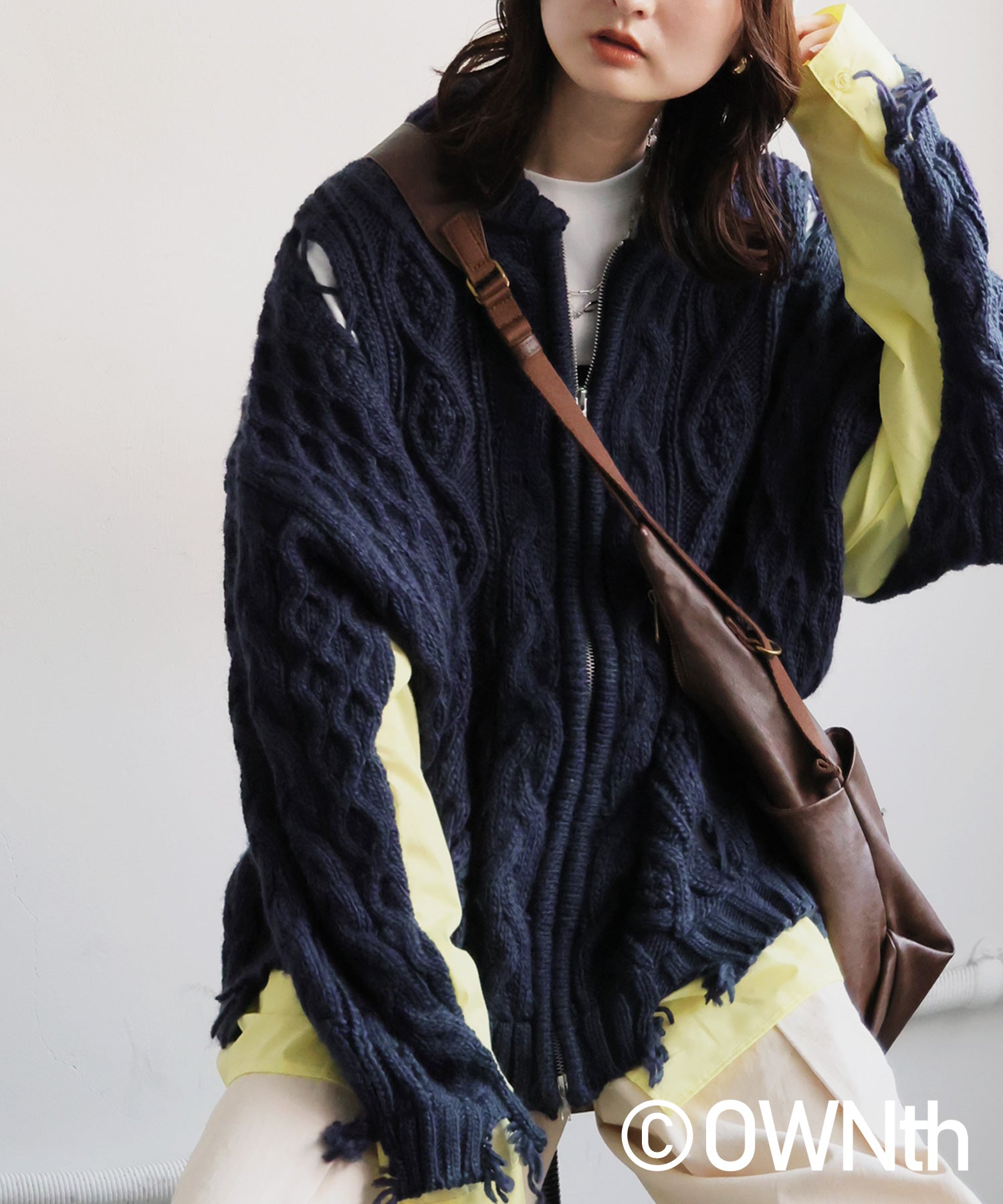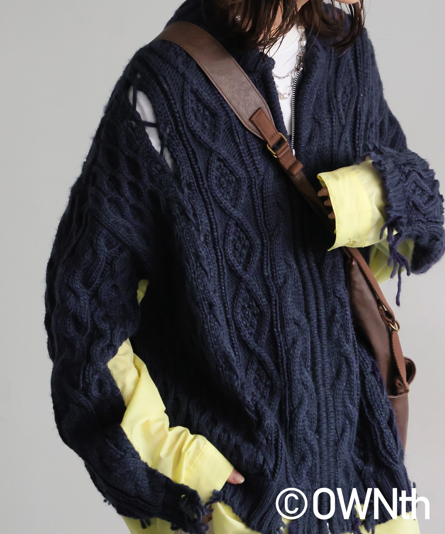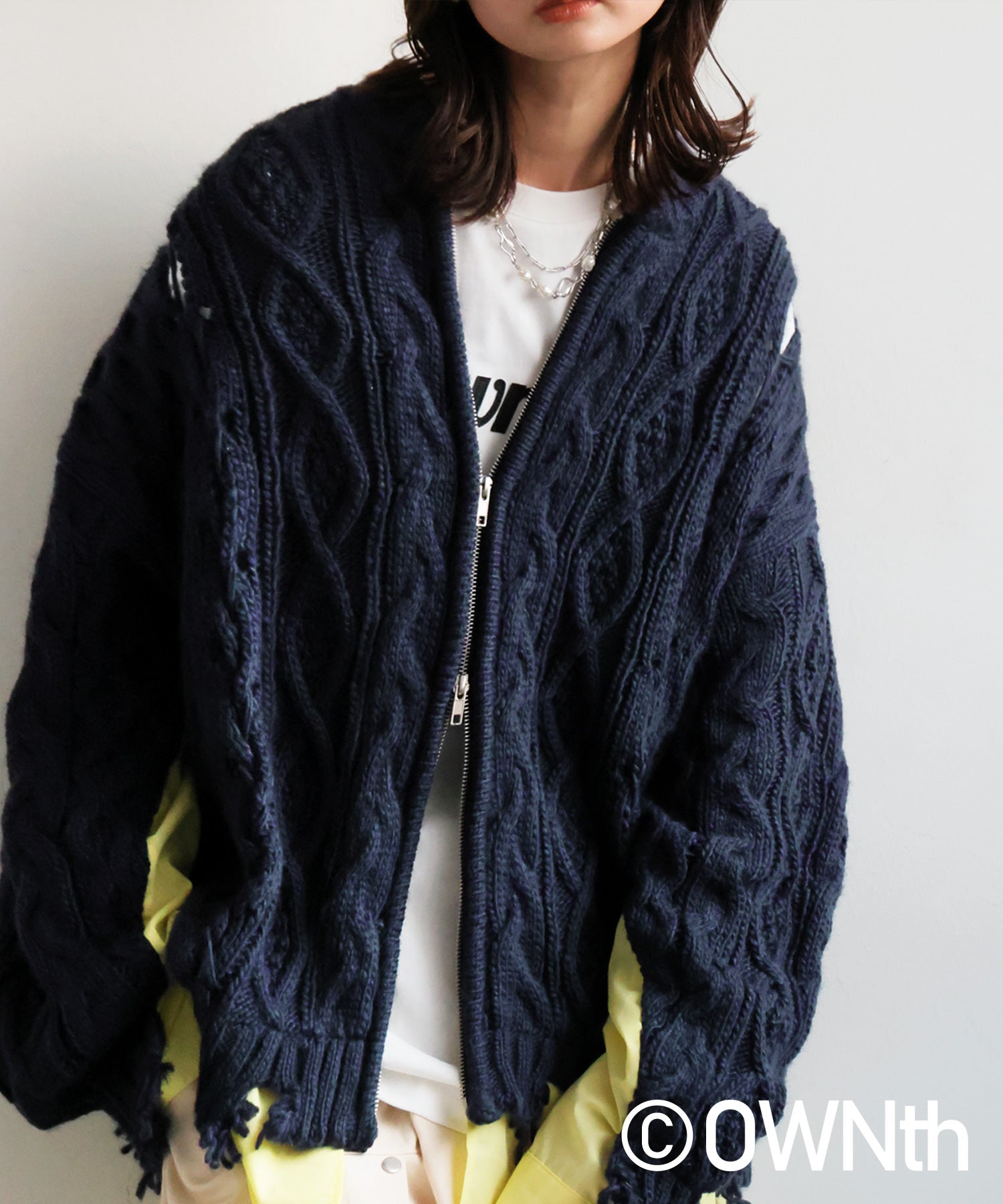 OWNth Cable Knit Zip Cardigan Ladies