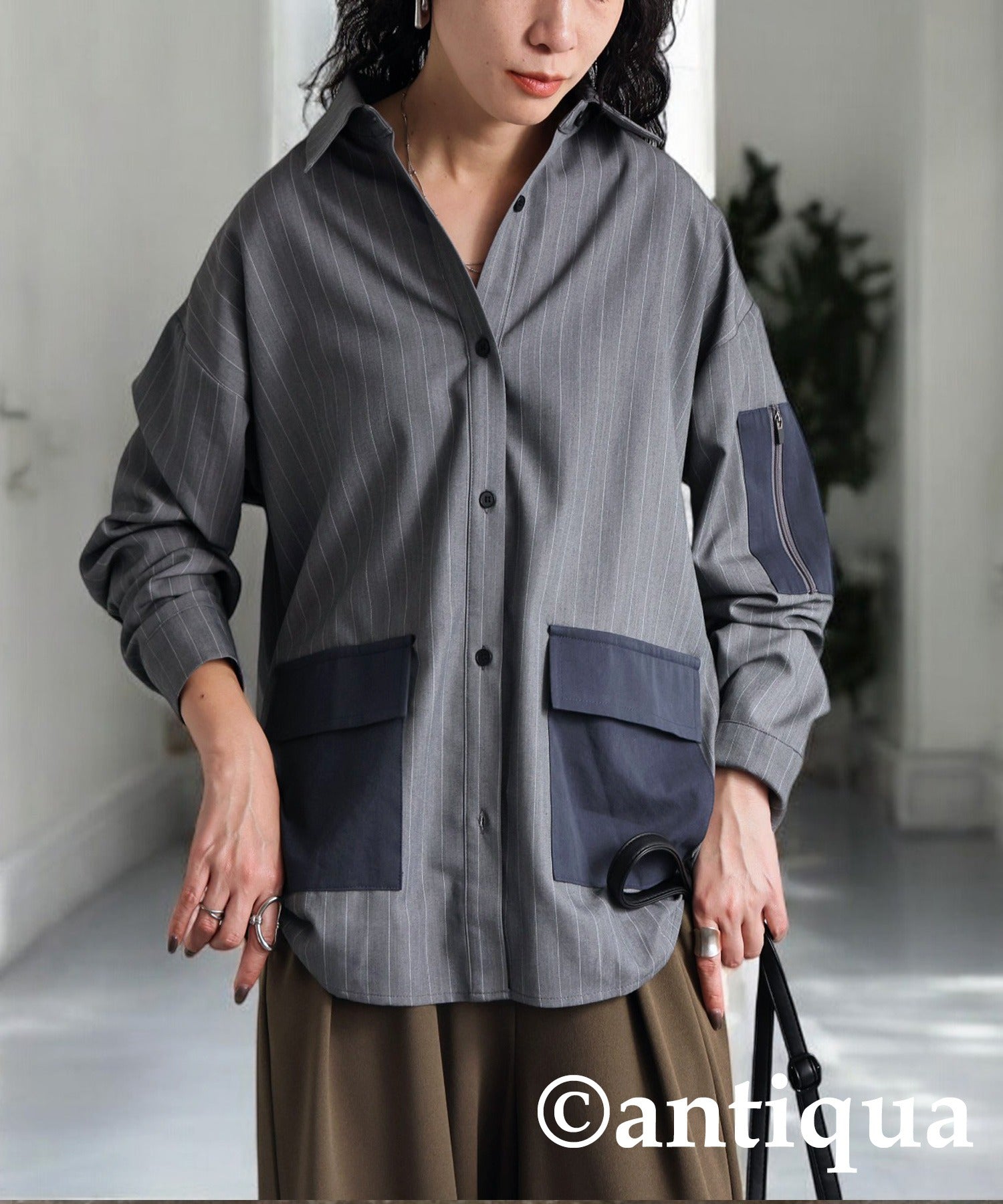 Striped Patch Pocket Shirt Ladies