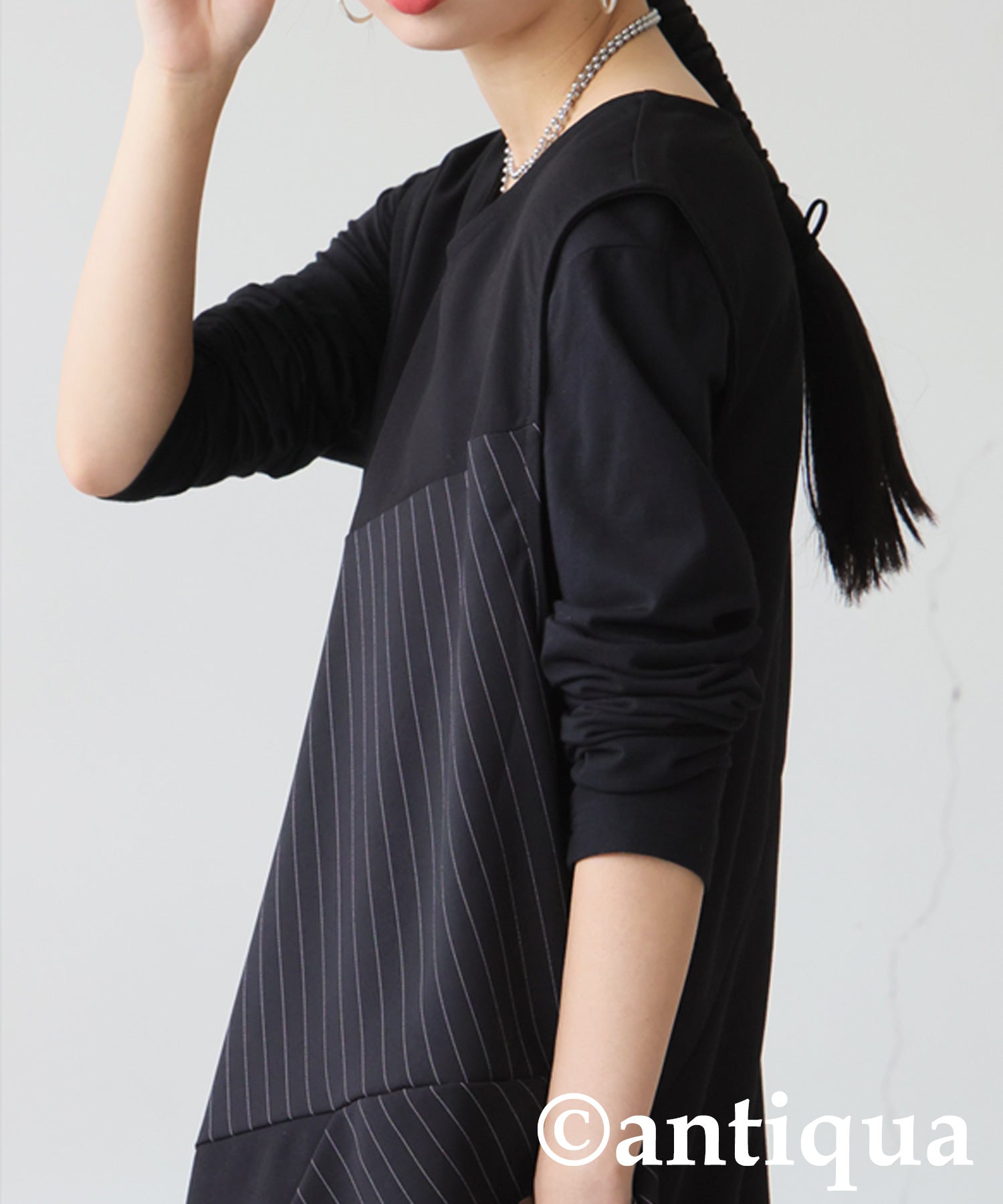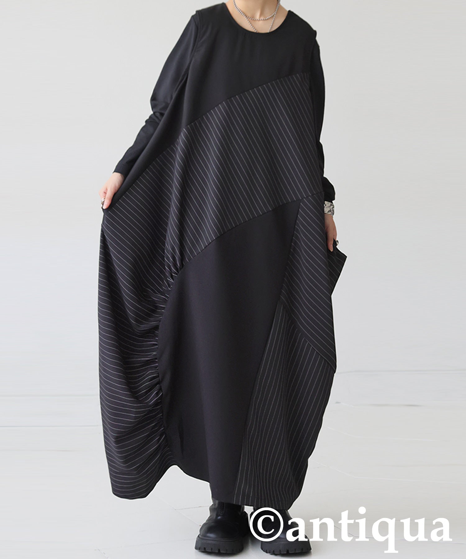 Mixed-Material Gathered Dress Ladies