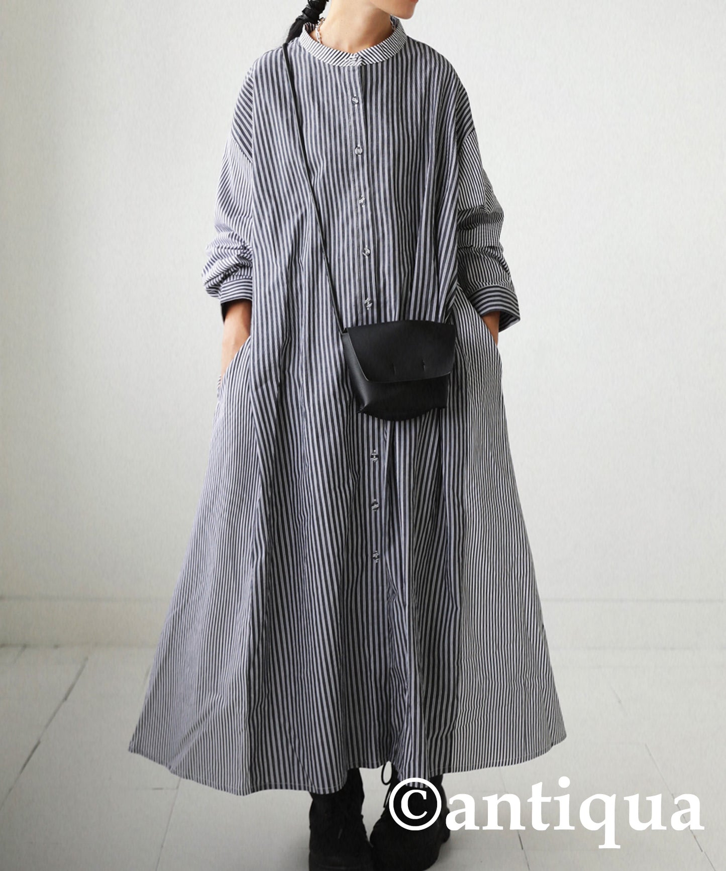 Vertical Striped pattern Ladies Casual shirt dress