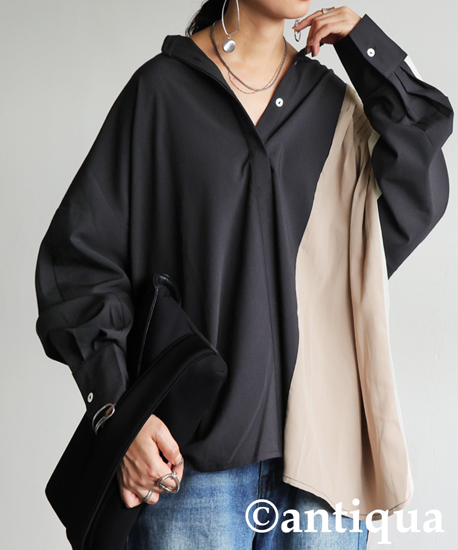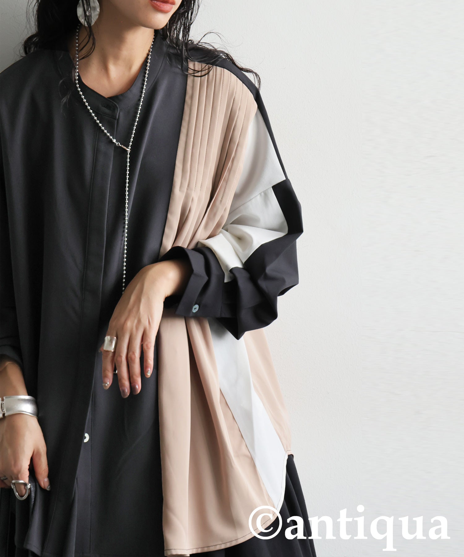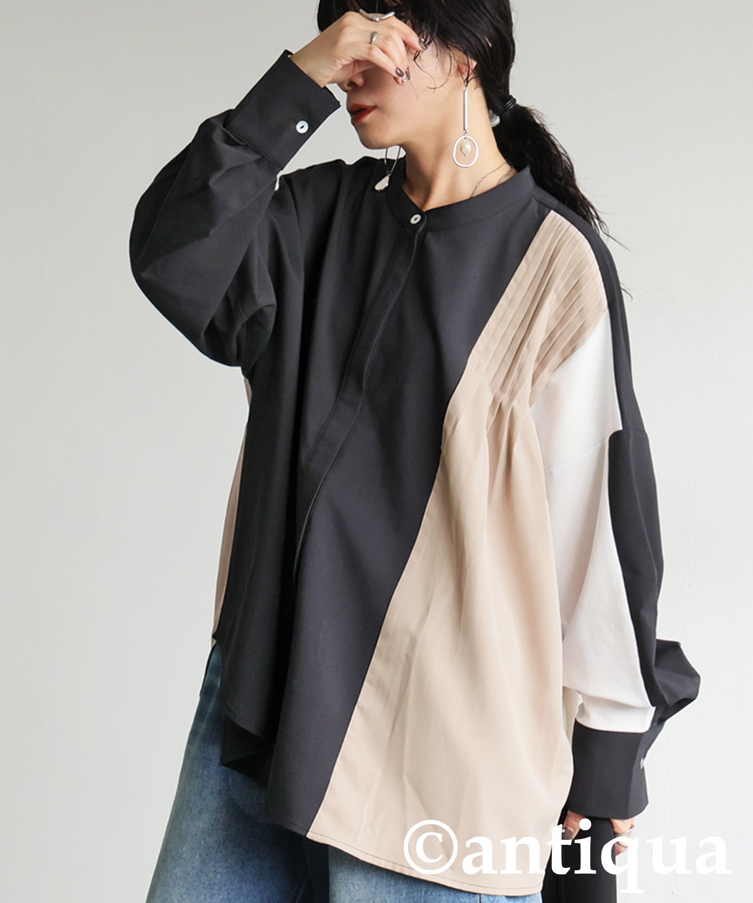 Two-Tone Tuck Design Shirt Ladies