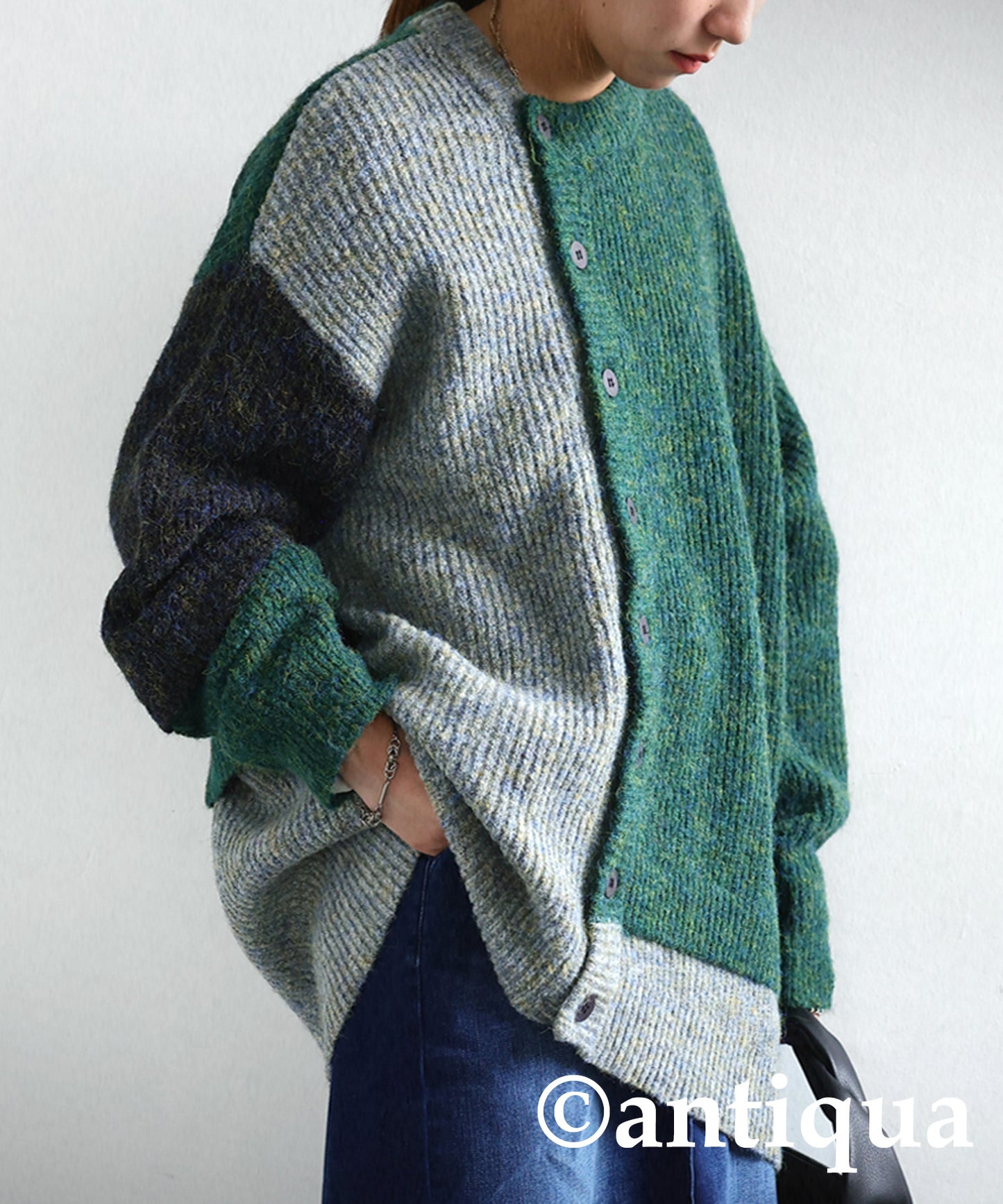 Ladies melange knitted cardigan multi color