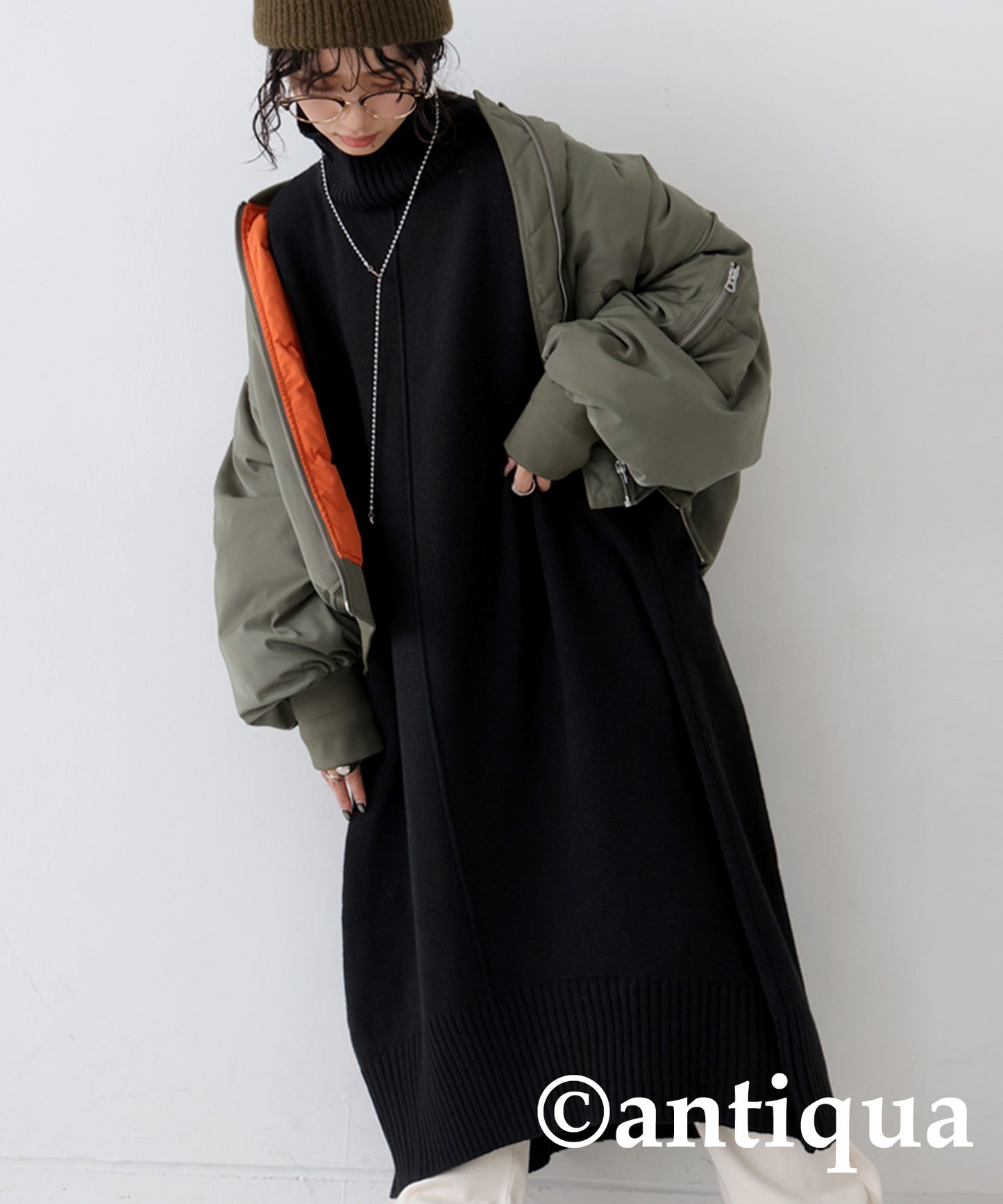 High neck knit dress Ladies