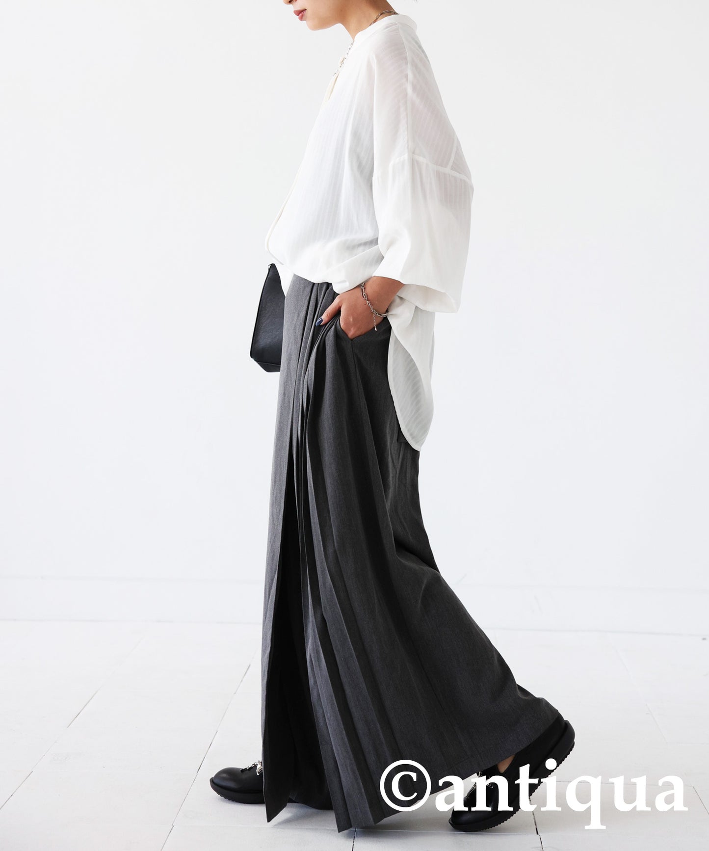 Ladies Half-Pleated Wrap Skirt Pants