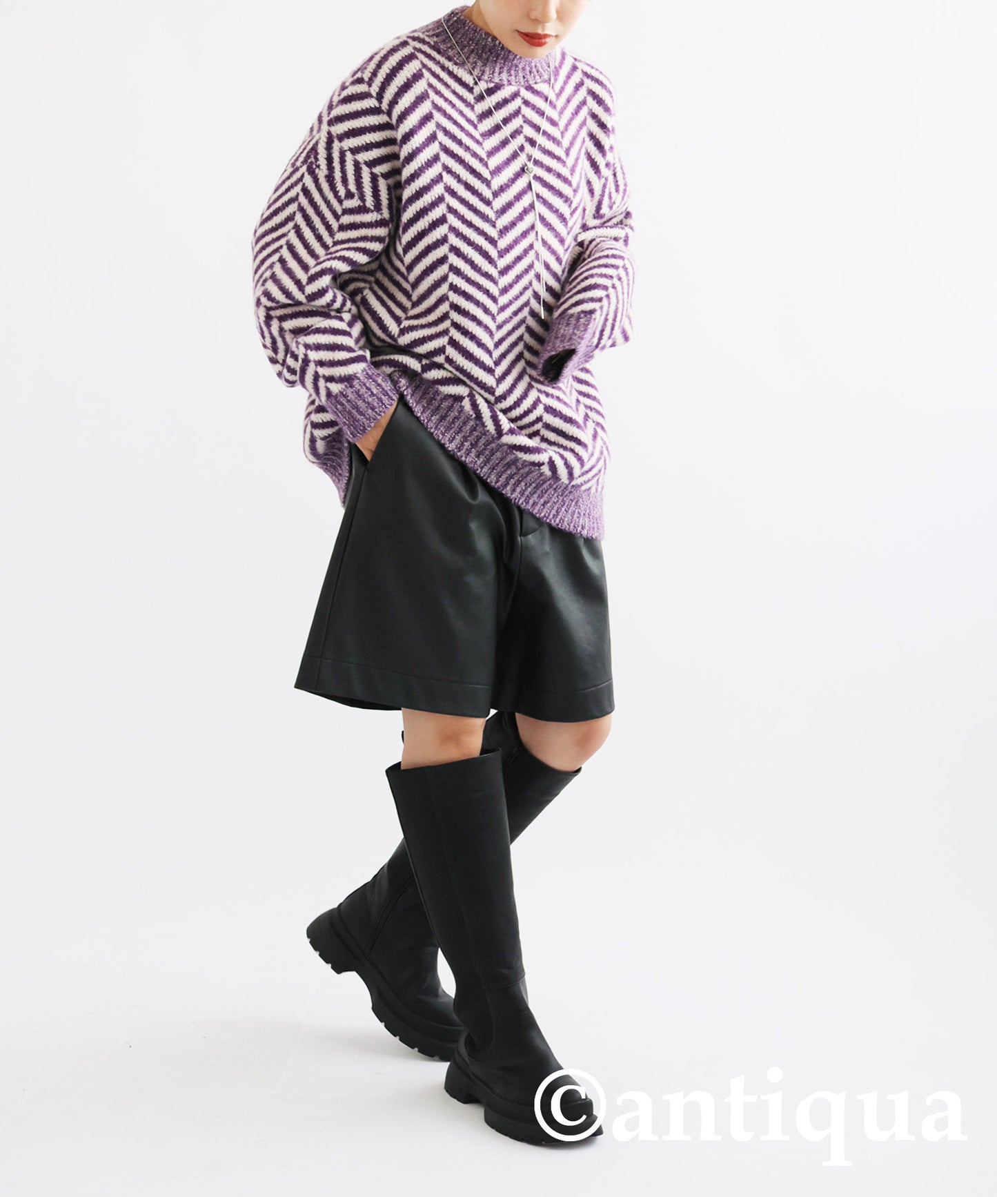 Herringbone pattern knit Ladies