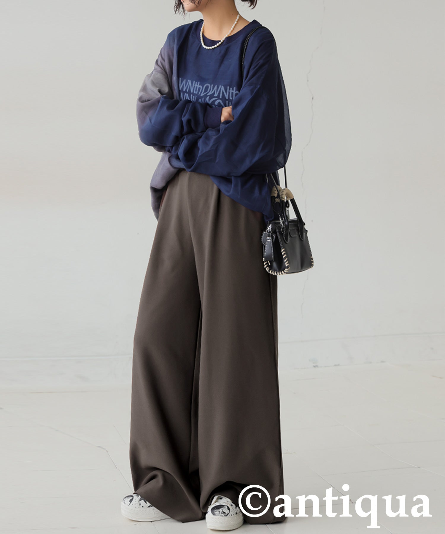 Fleece-Lined Georgette Wide-Leg Pants Ladies