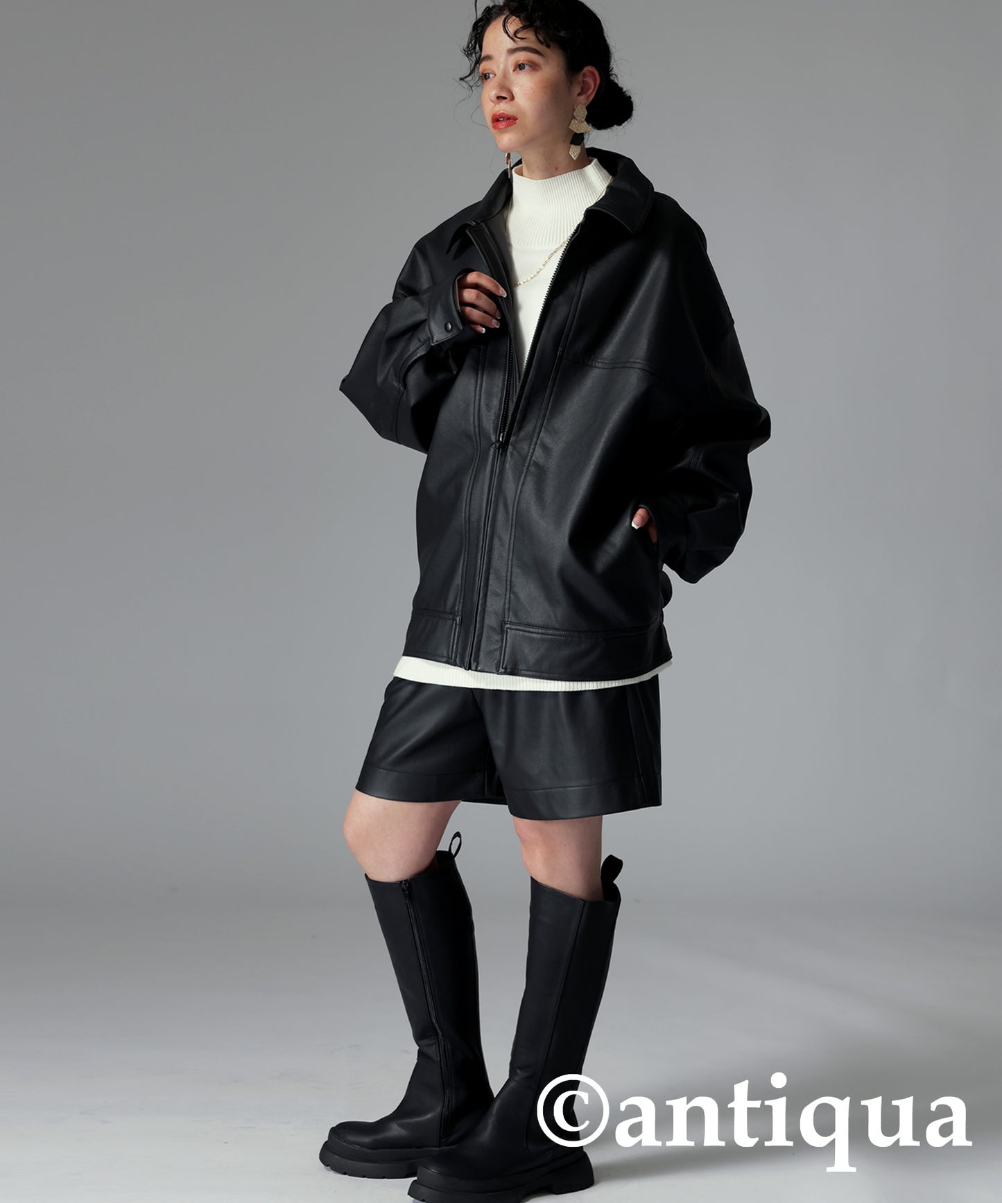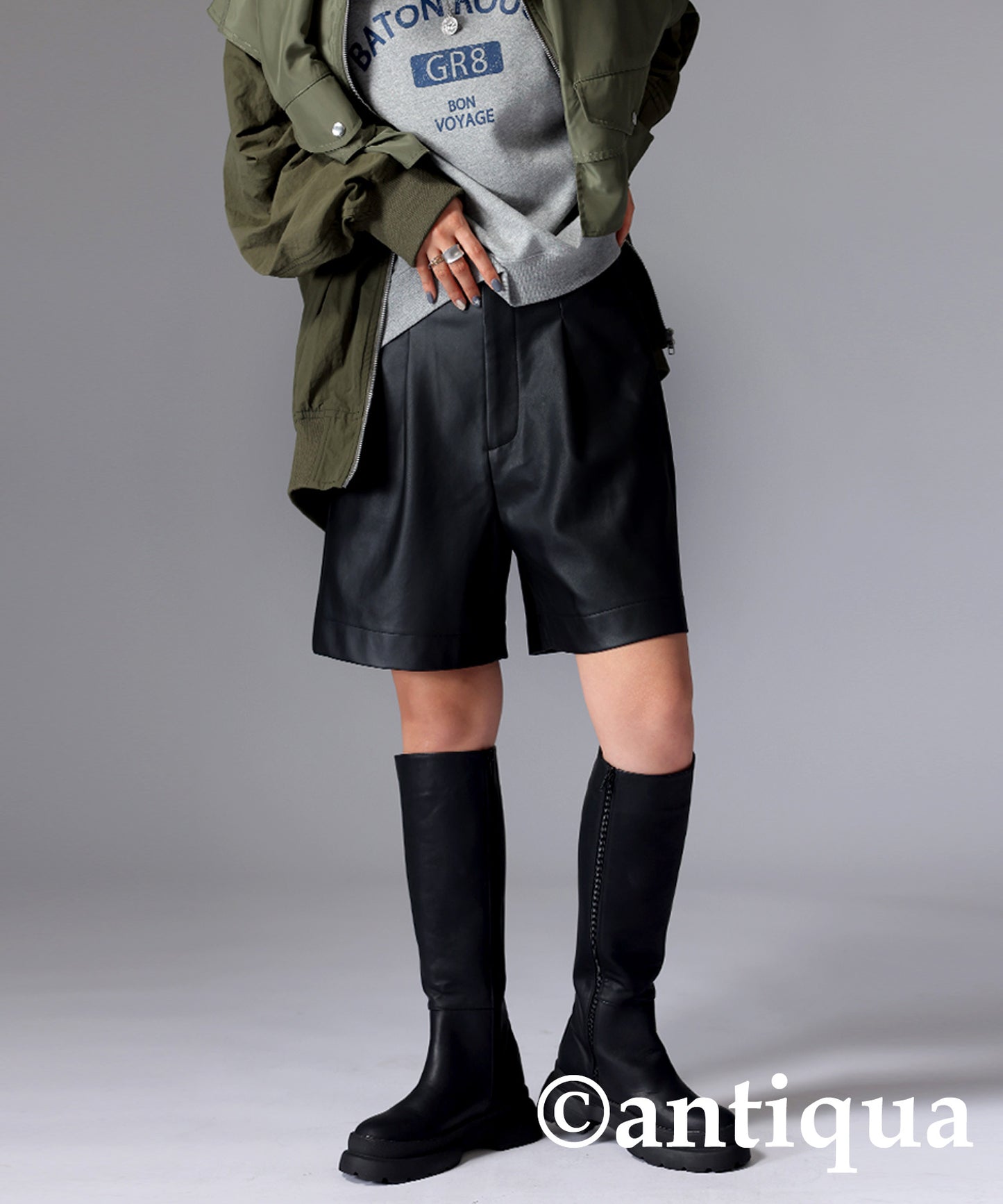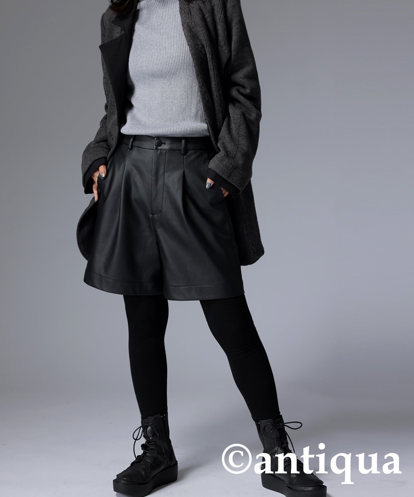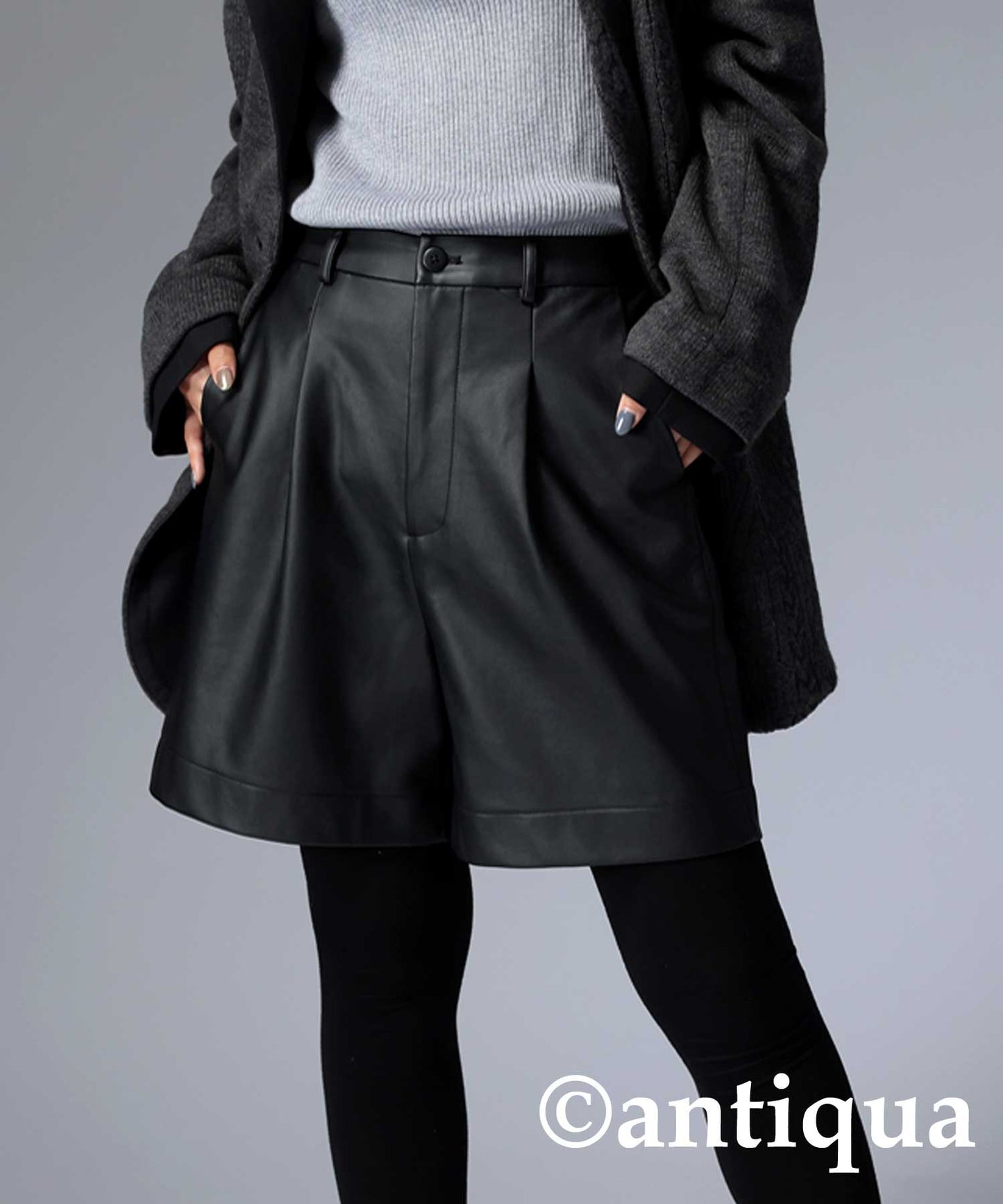 Ladies shorts vegan leather knee-length