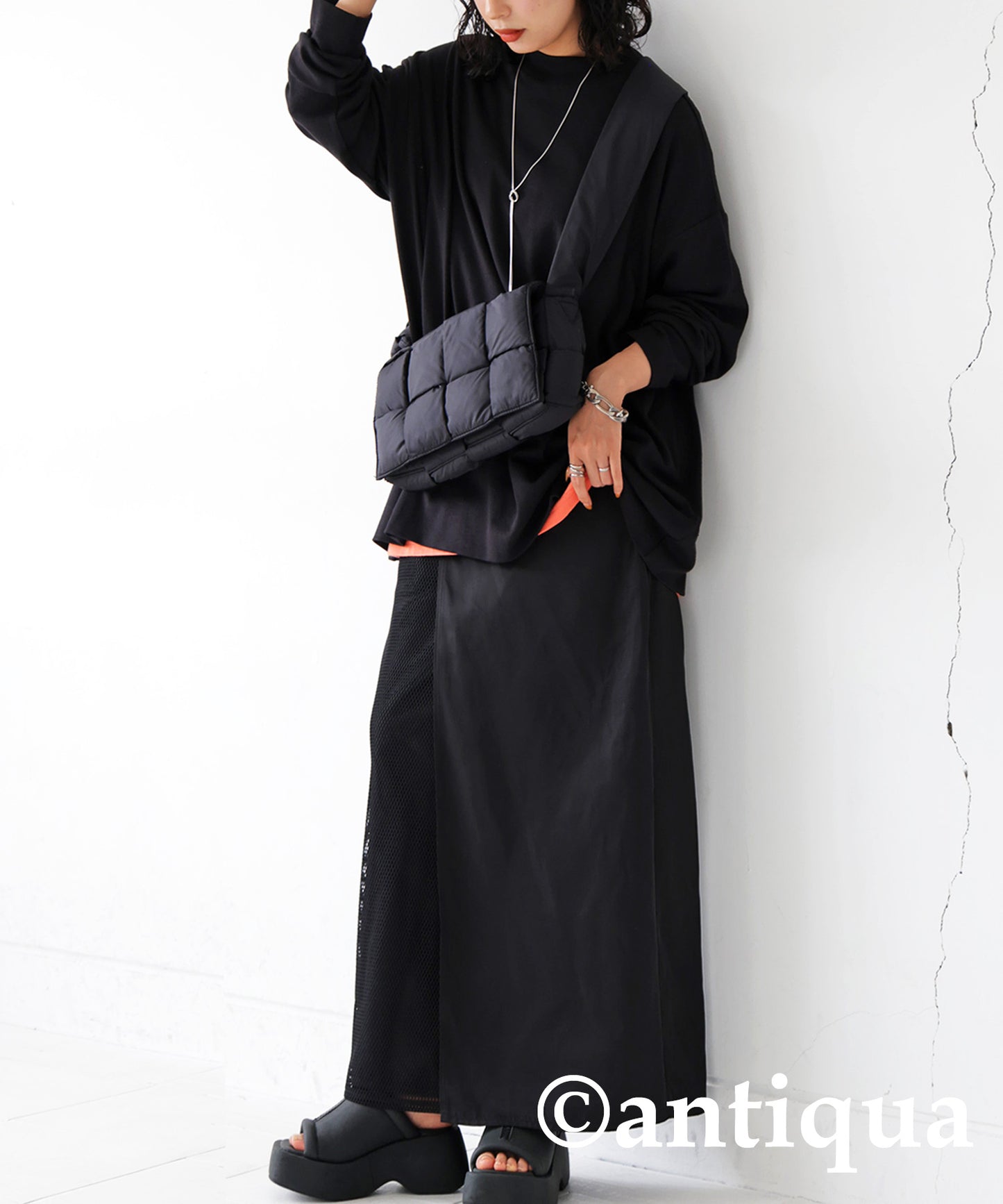 Different material MIX mesh wrap style skirt Ladies