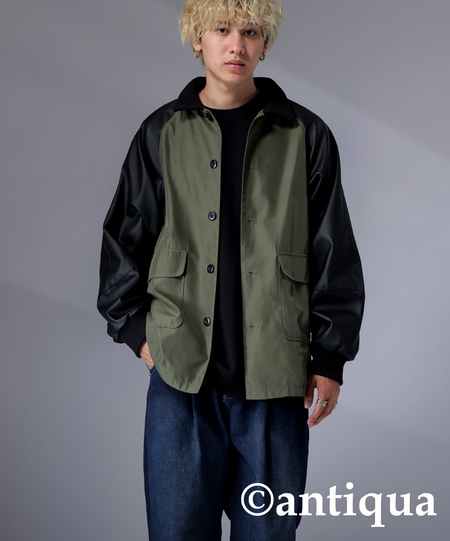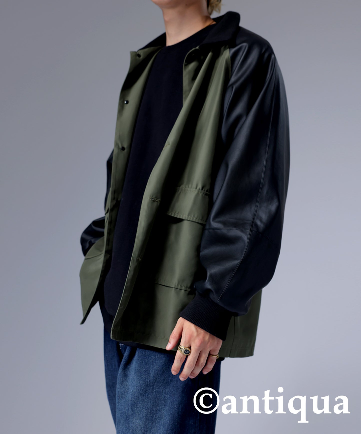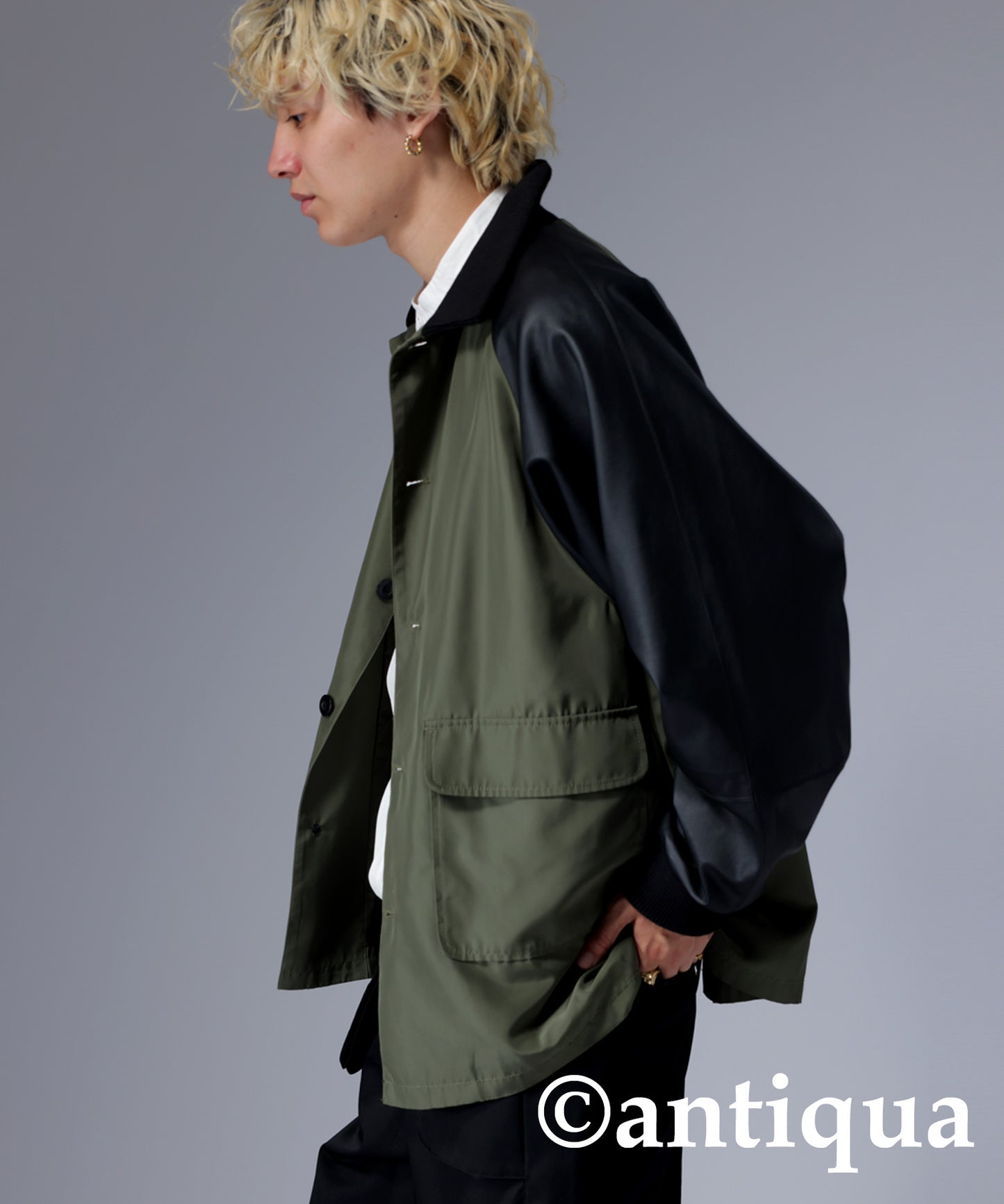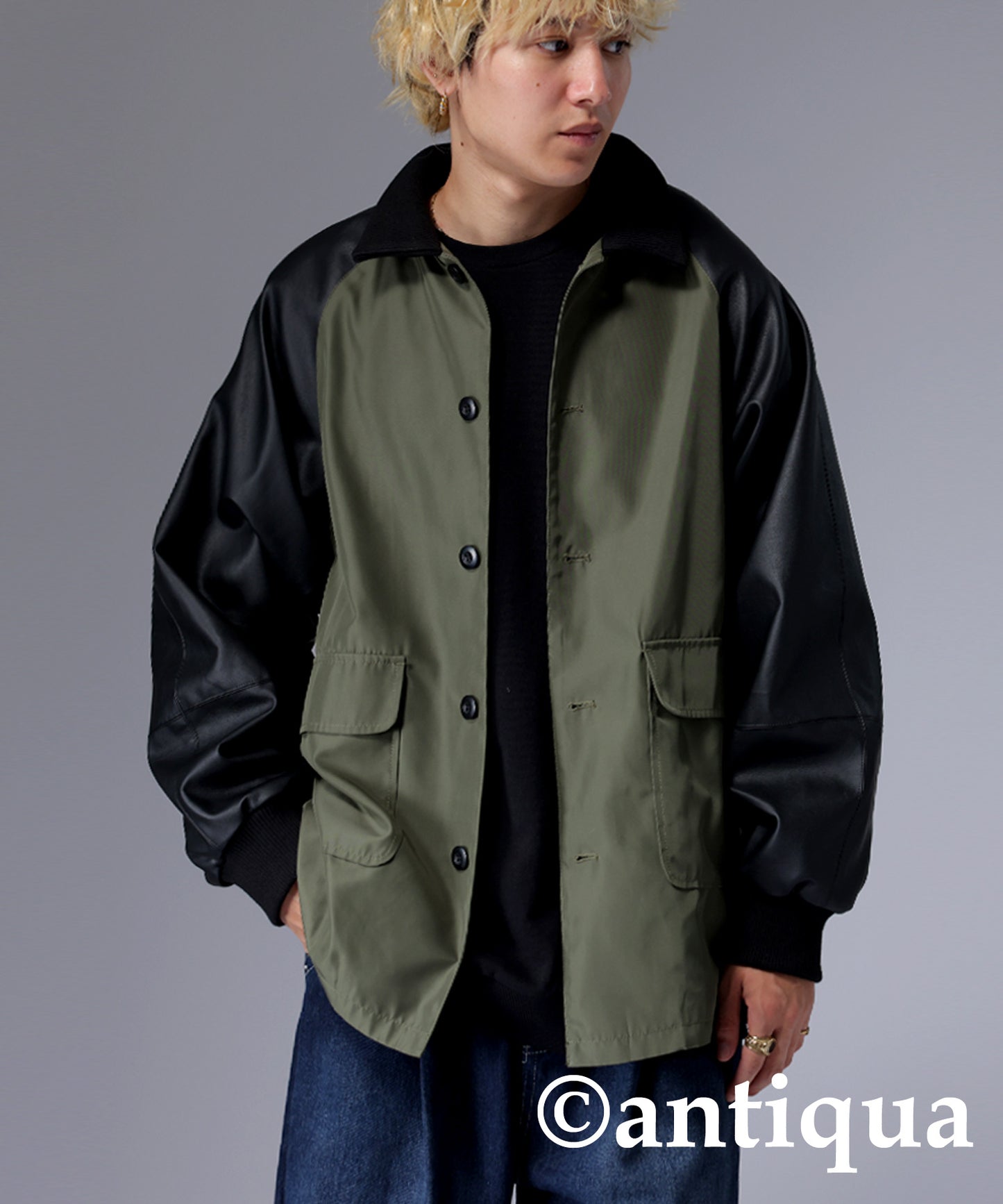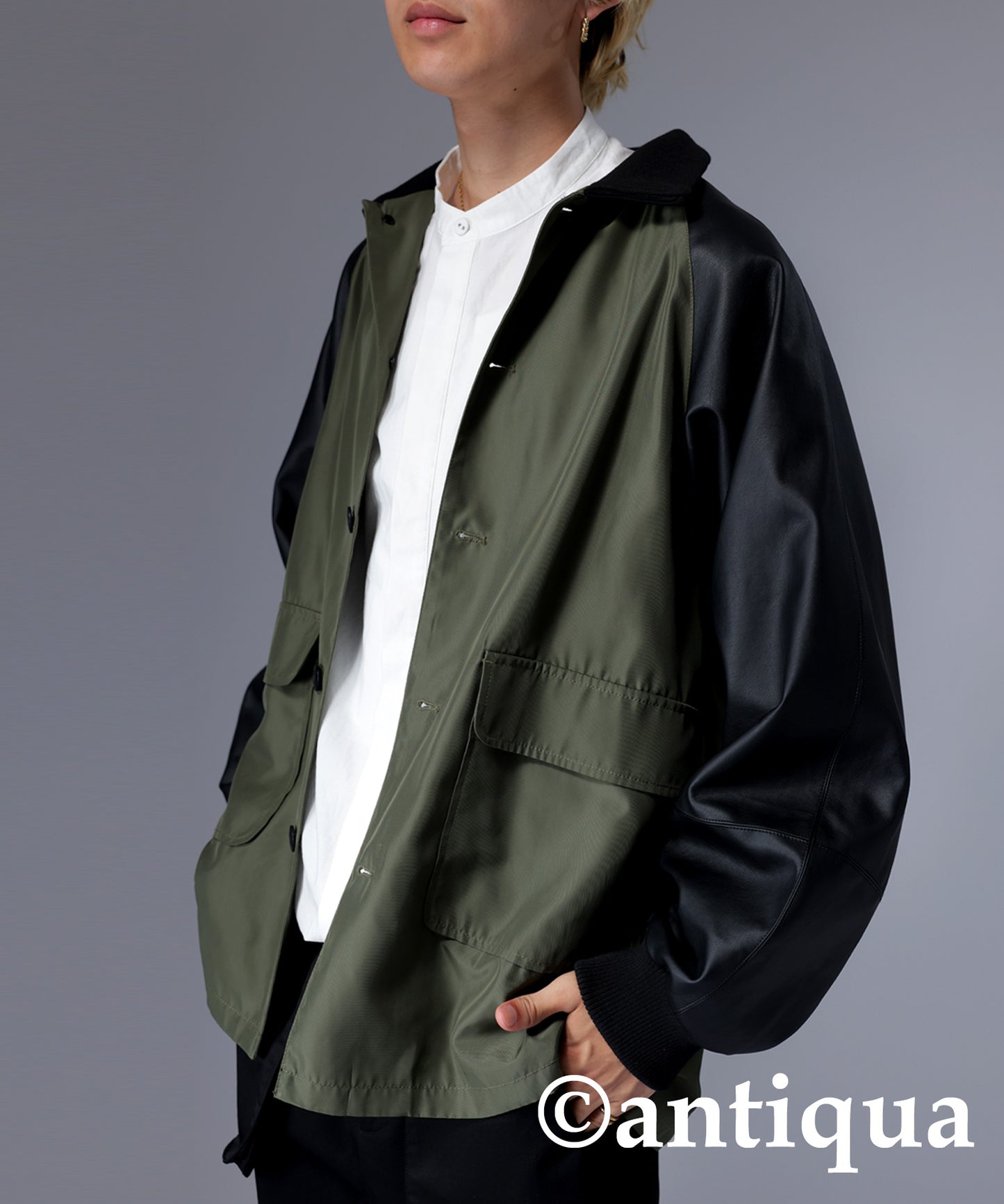Men's Nyron and vegan leather switchingMilitary jacket