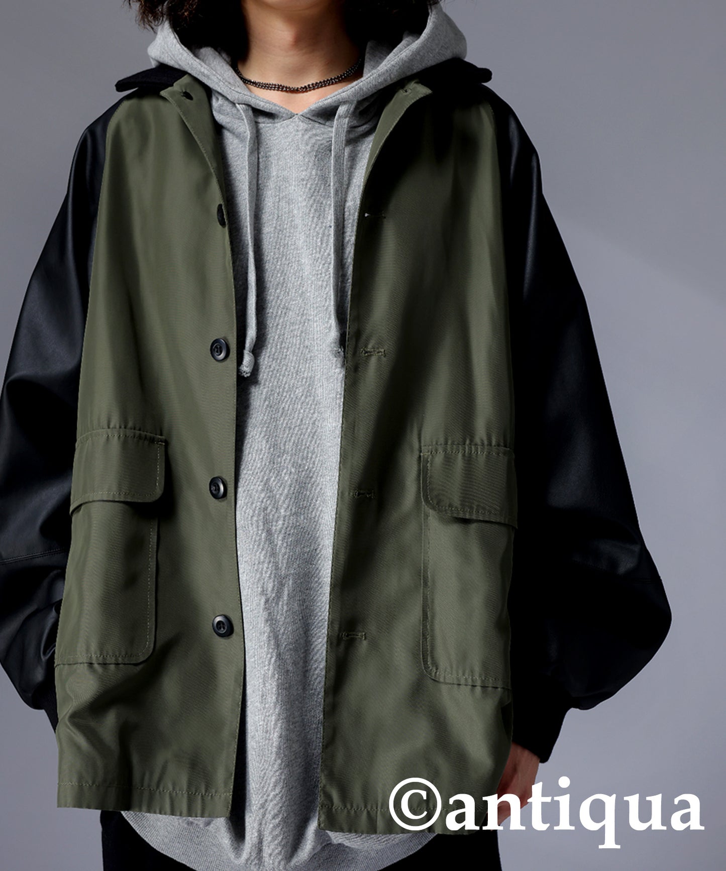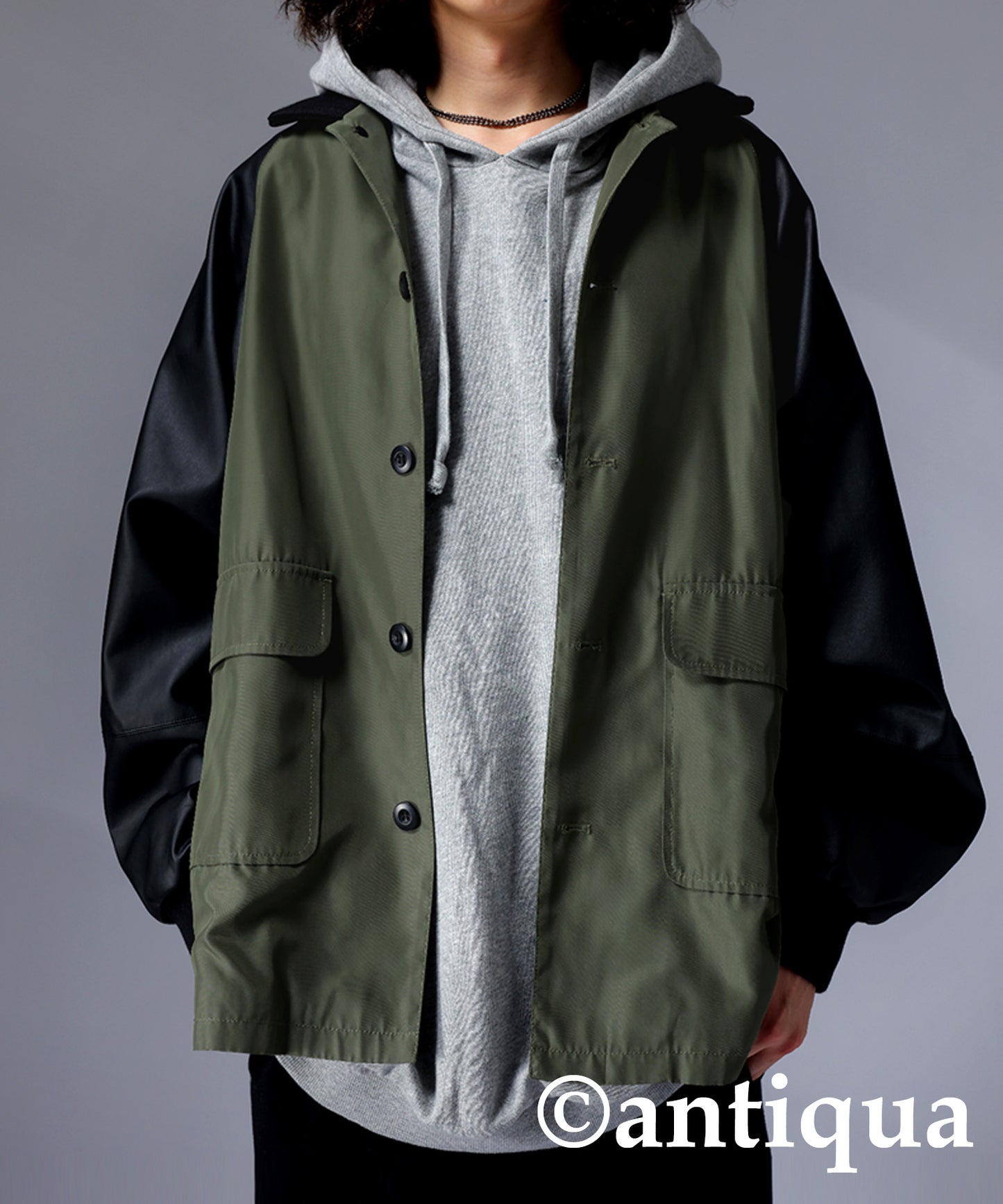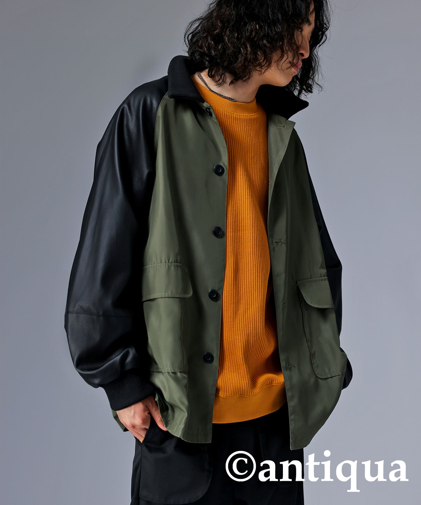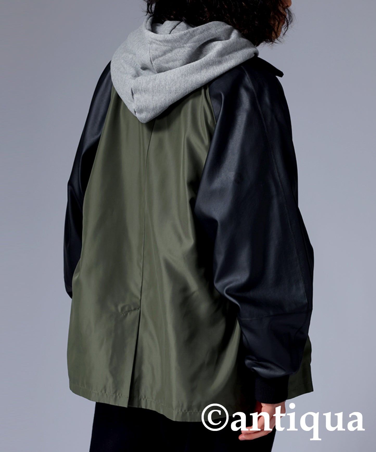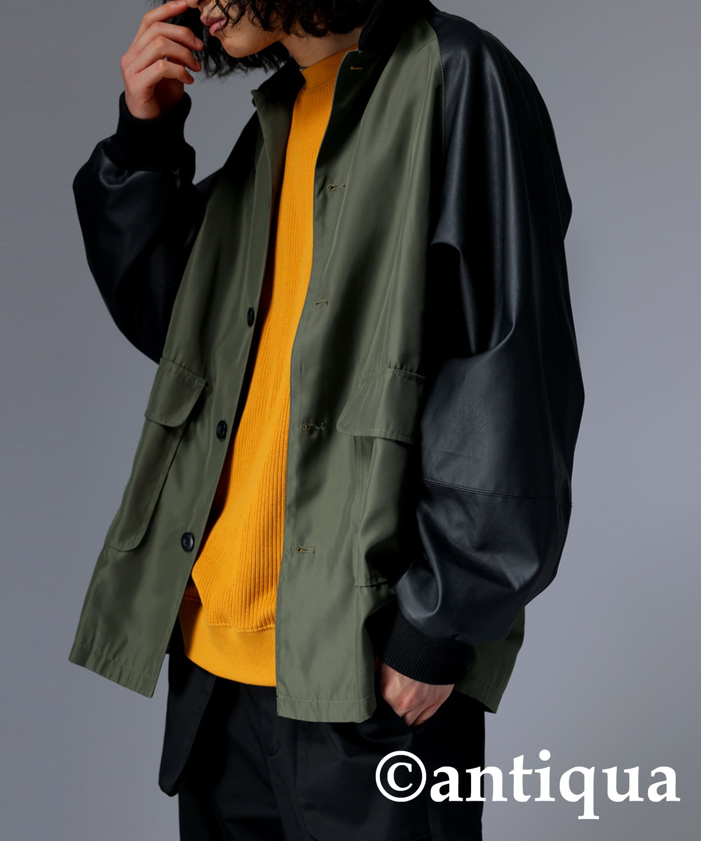 Men's Nyron and vegan leather switchingMilitary jacket