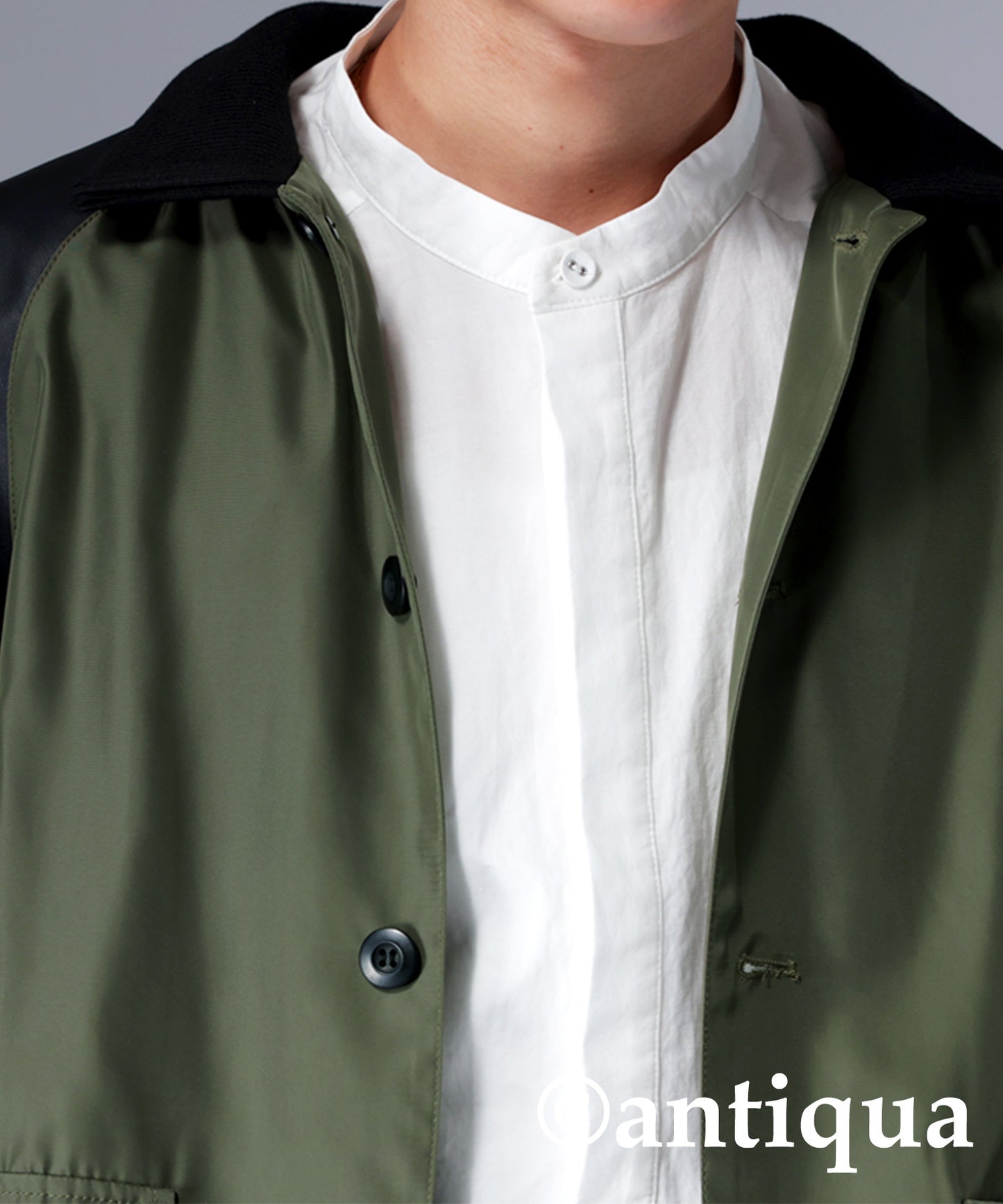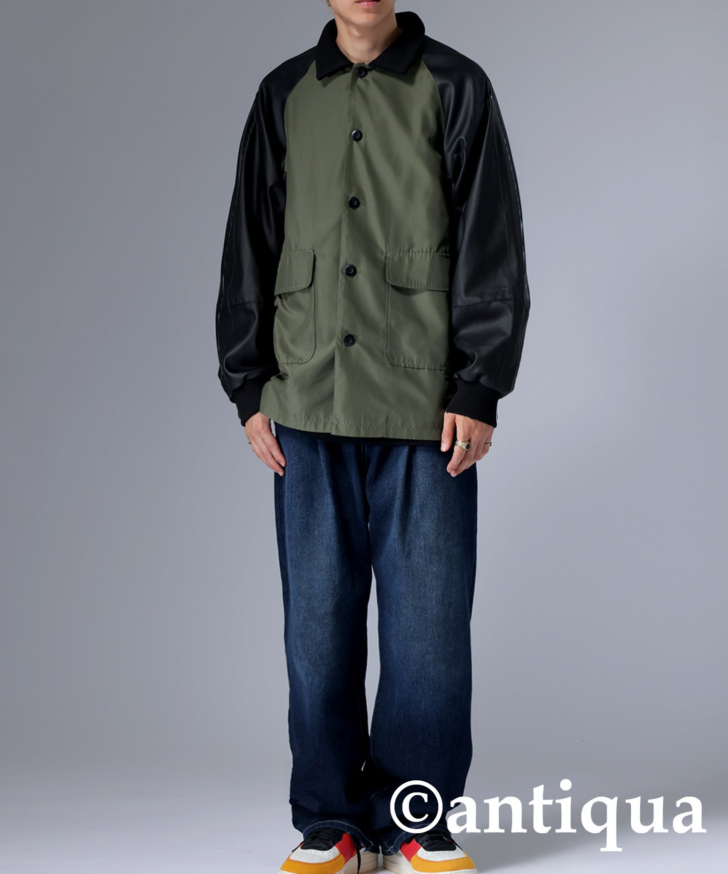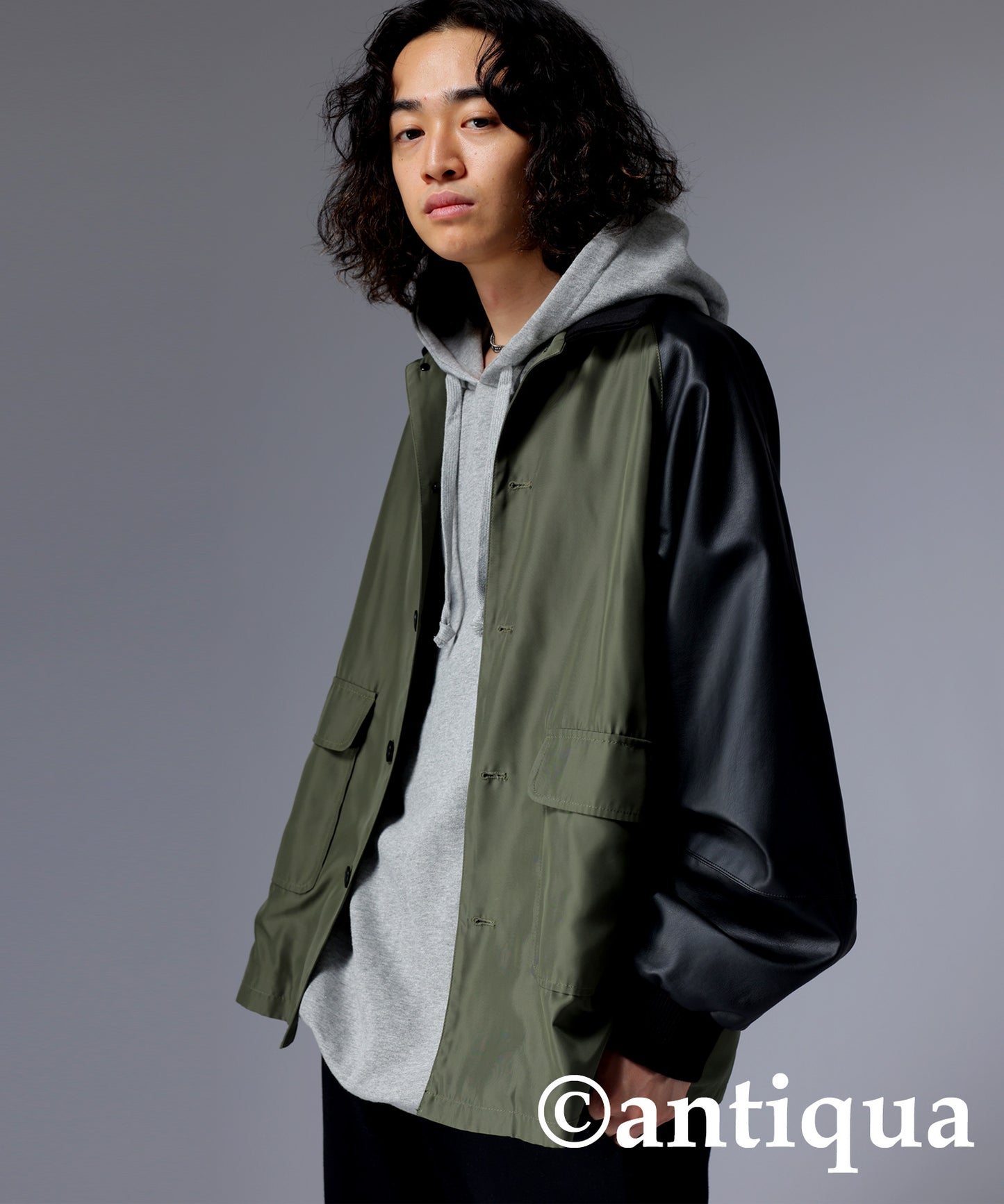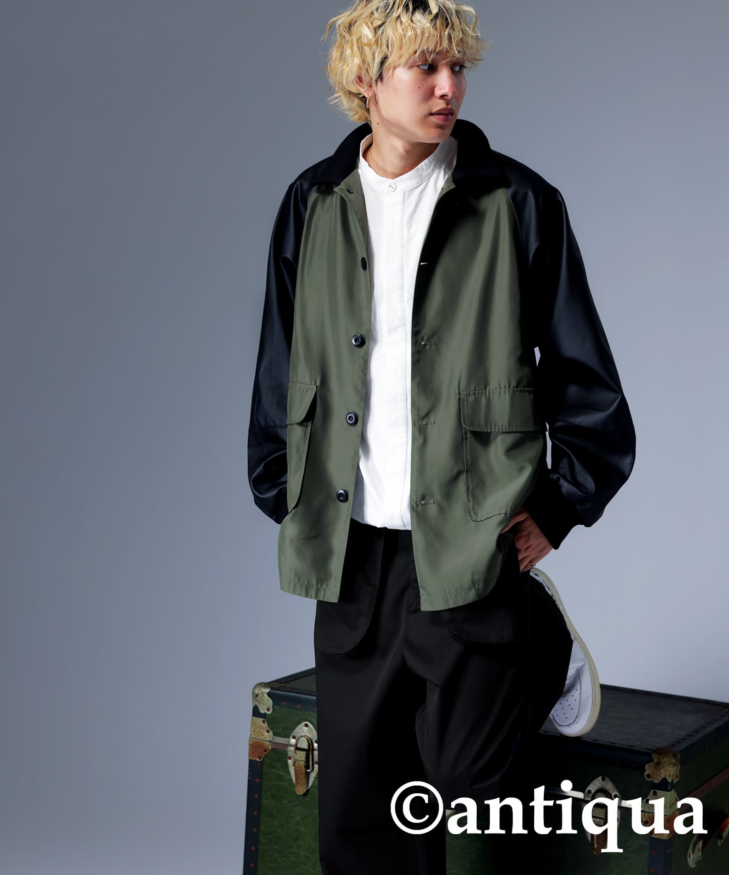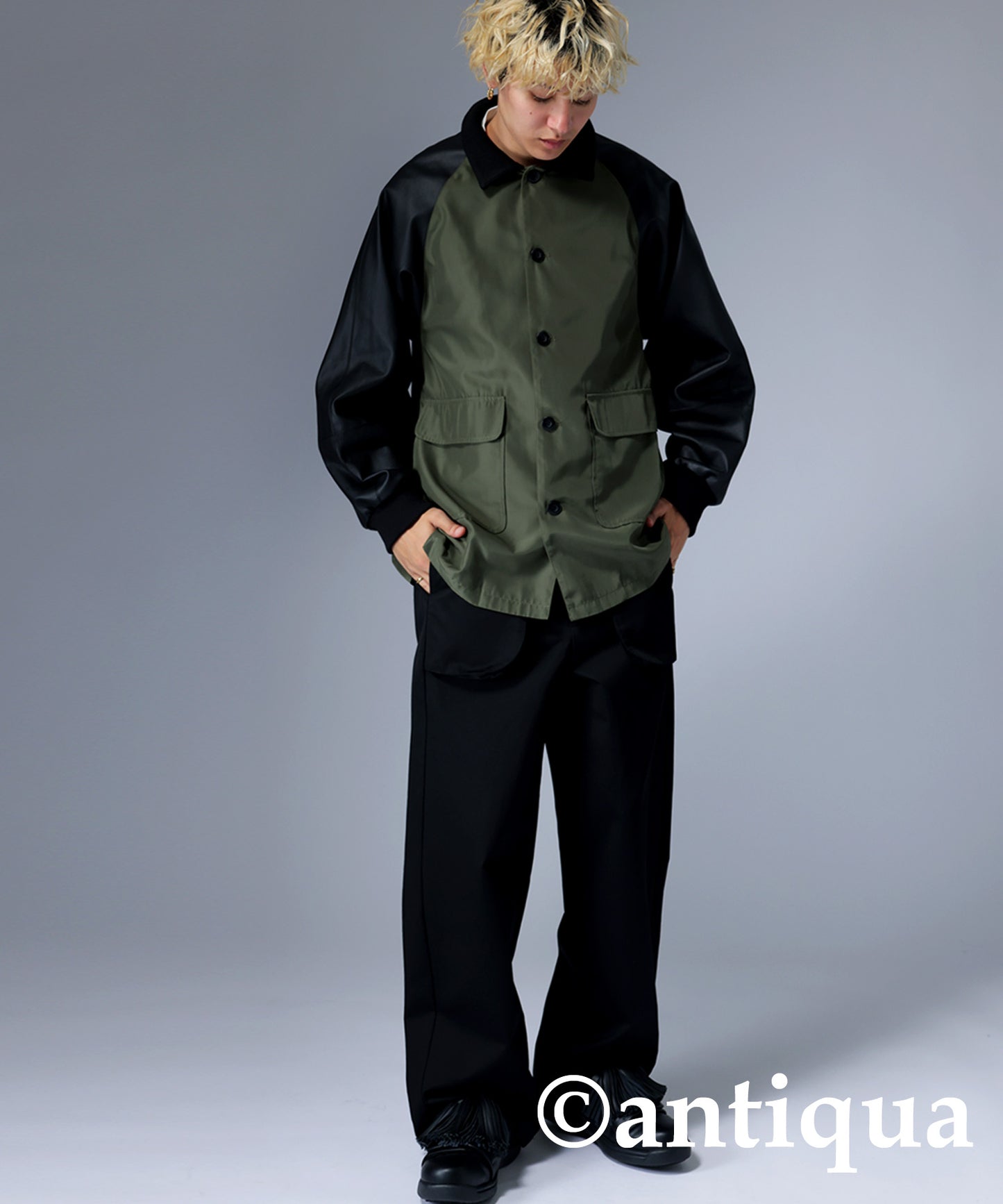 Men's Nyron and vegan leather switchingMilitary jacket