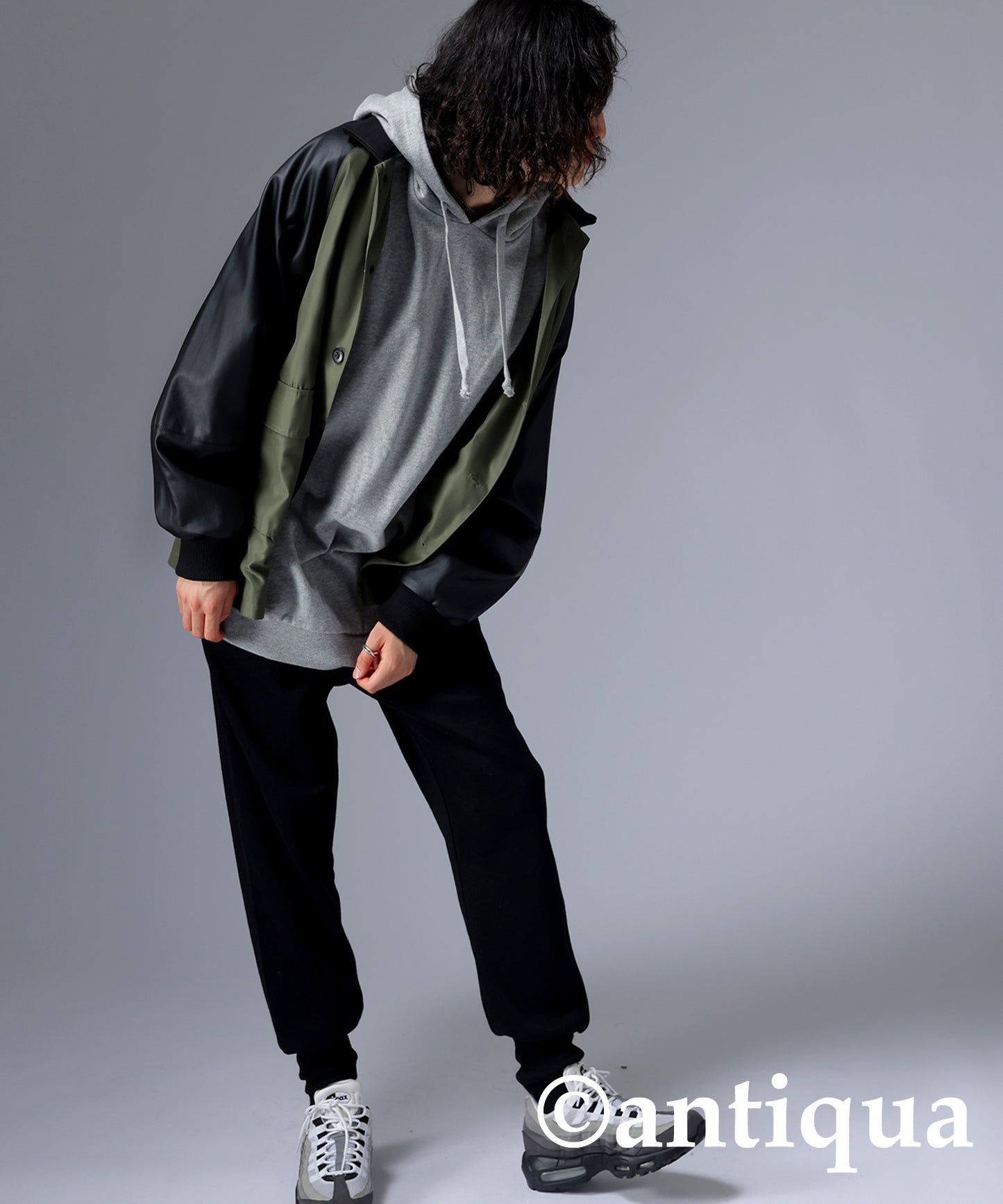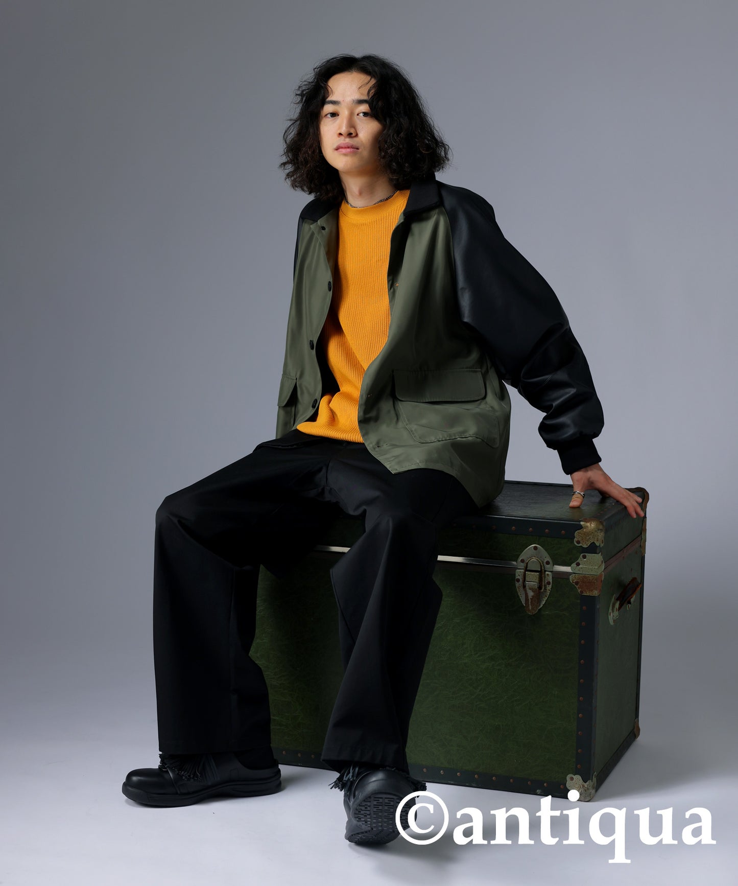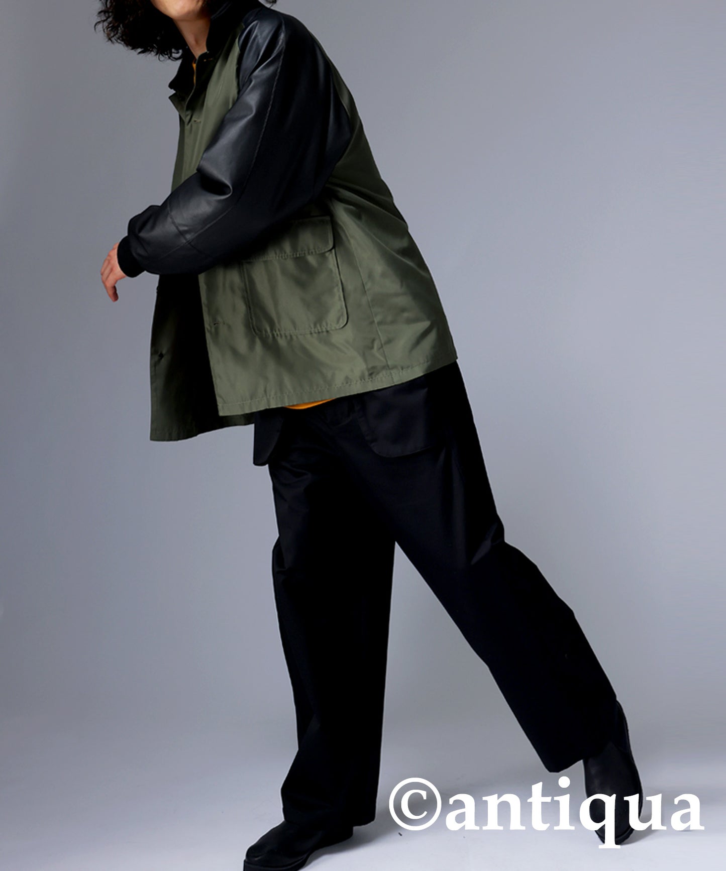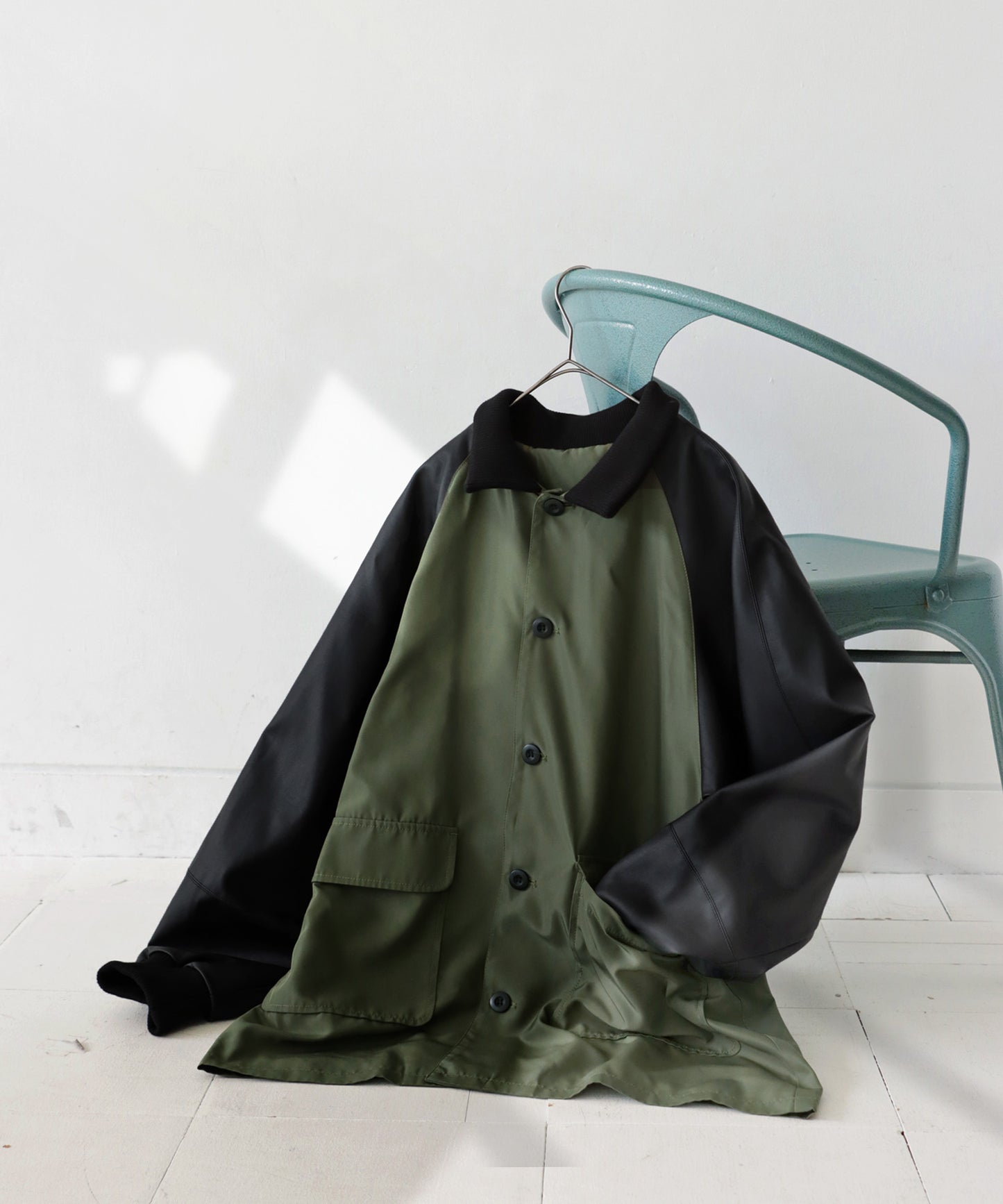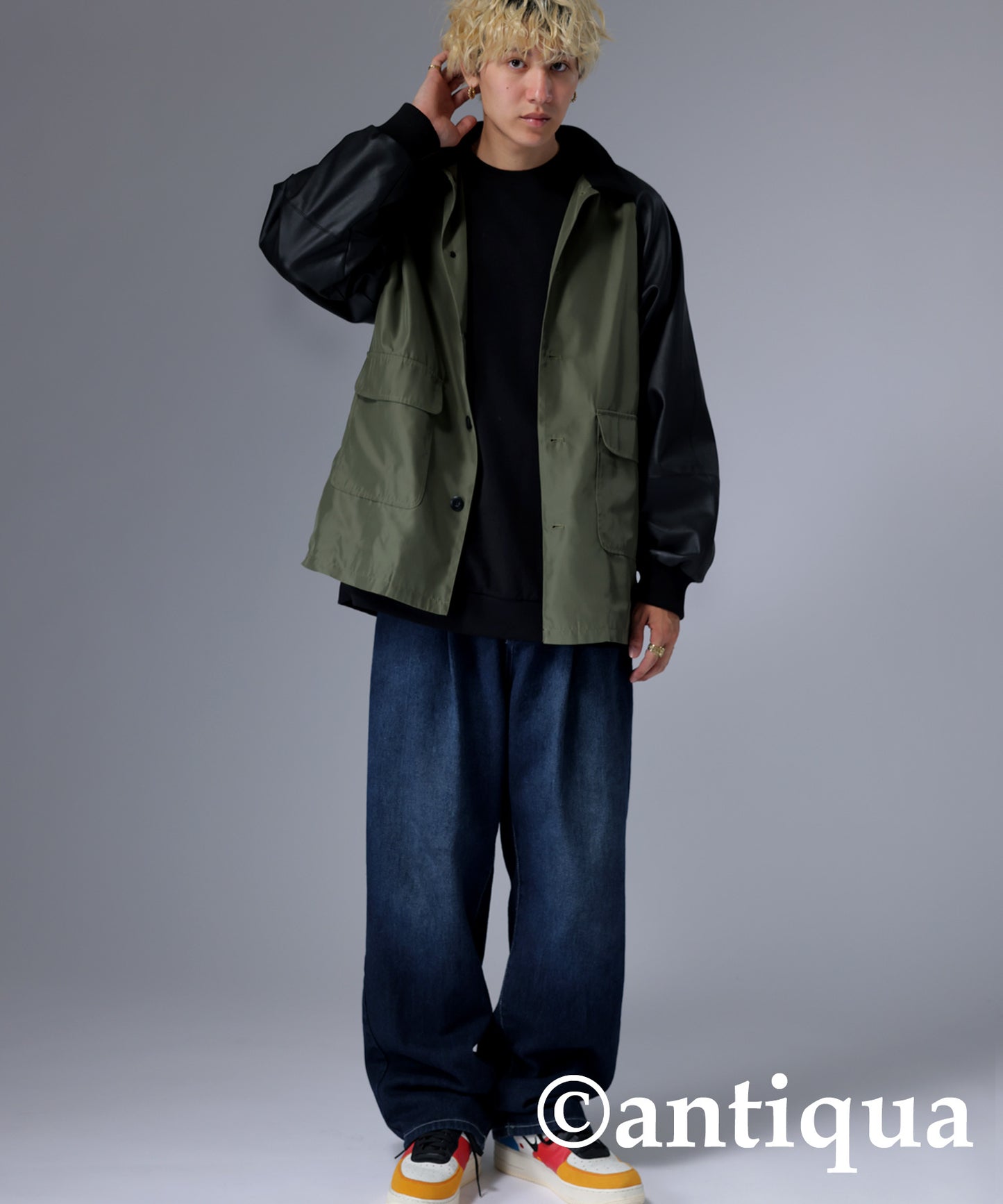Men's Nyron and vegan leather switchingMilitary jacket