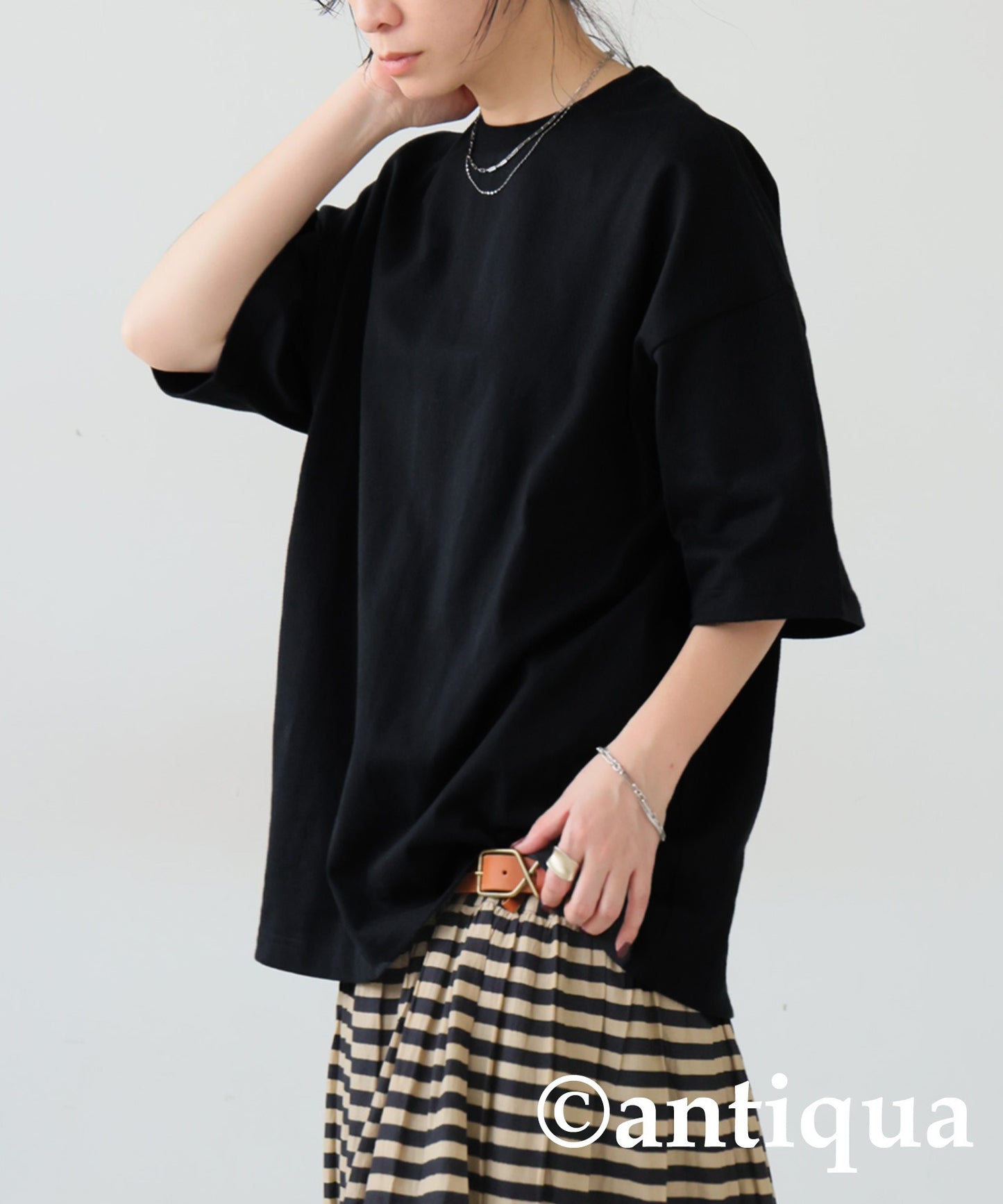 Basque fabric Ladies T -shirt Short-Sleeve Cotton 100% plain