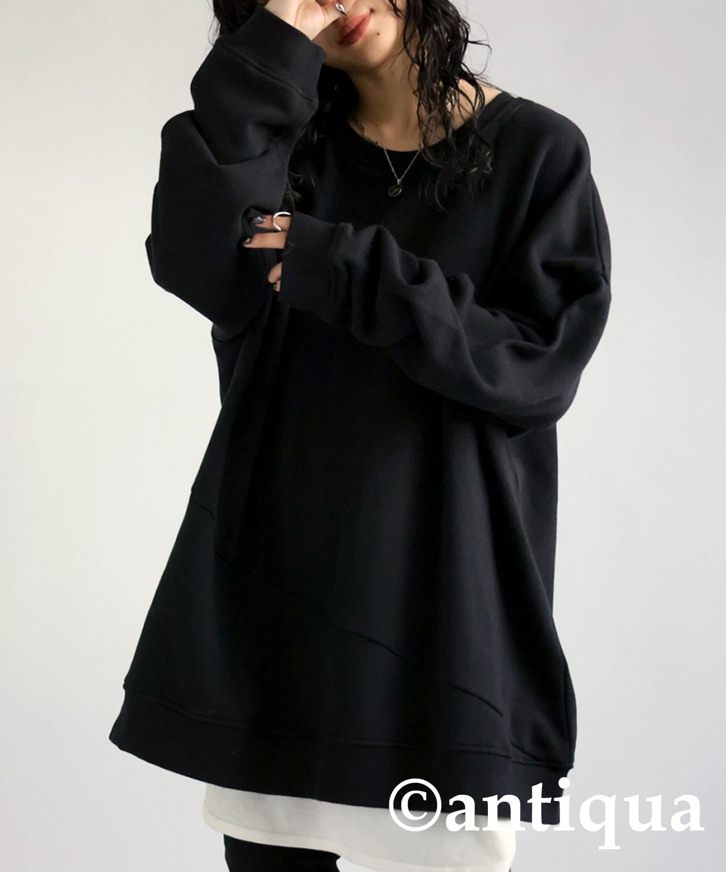 Asymmetric pile fabric pullover Ladies
