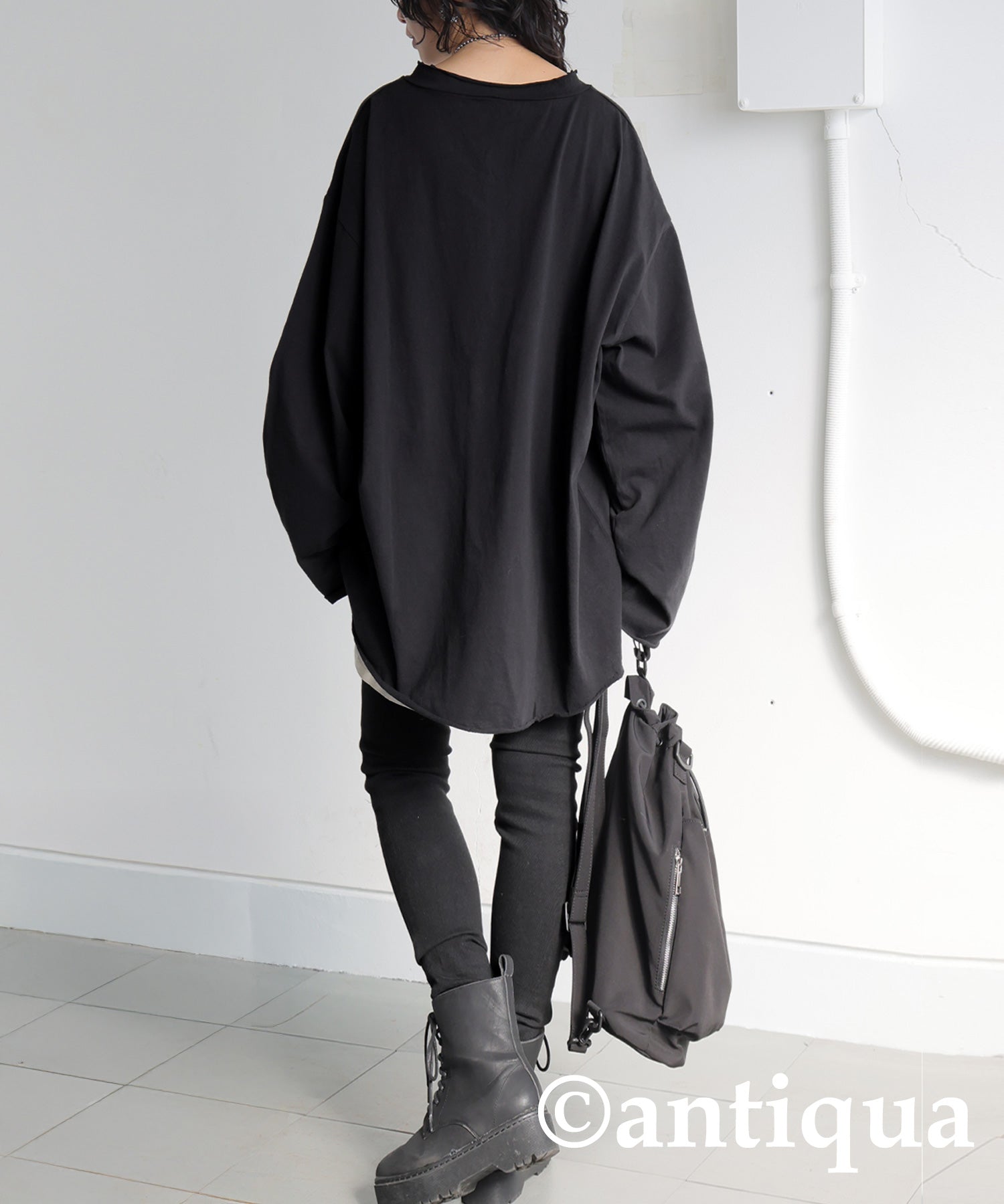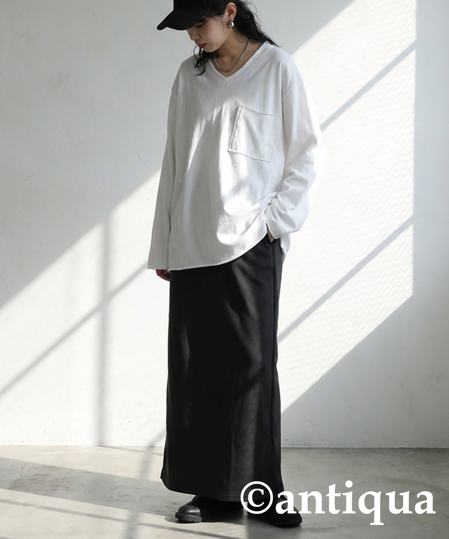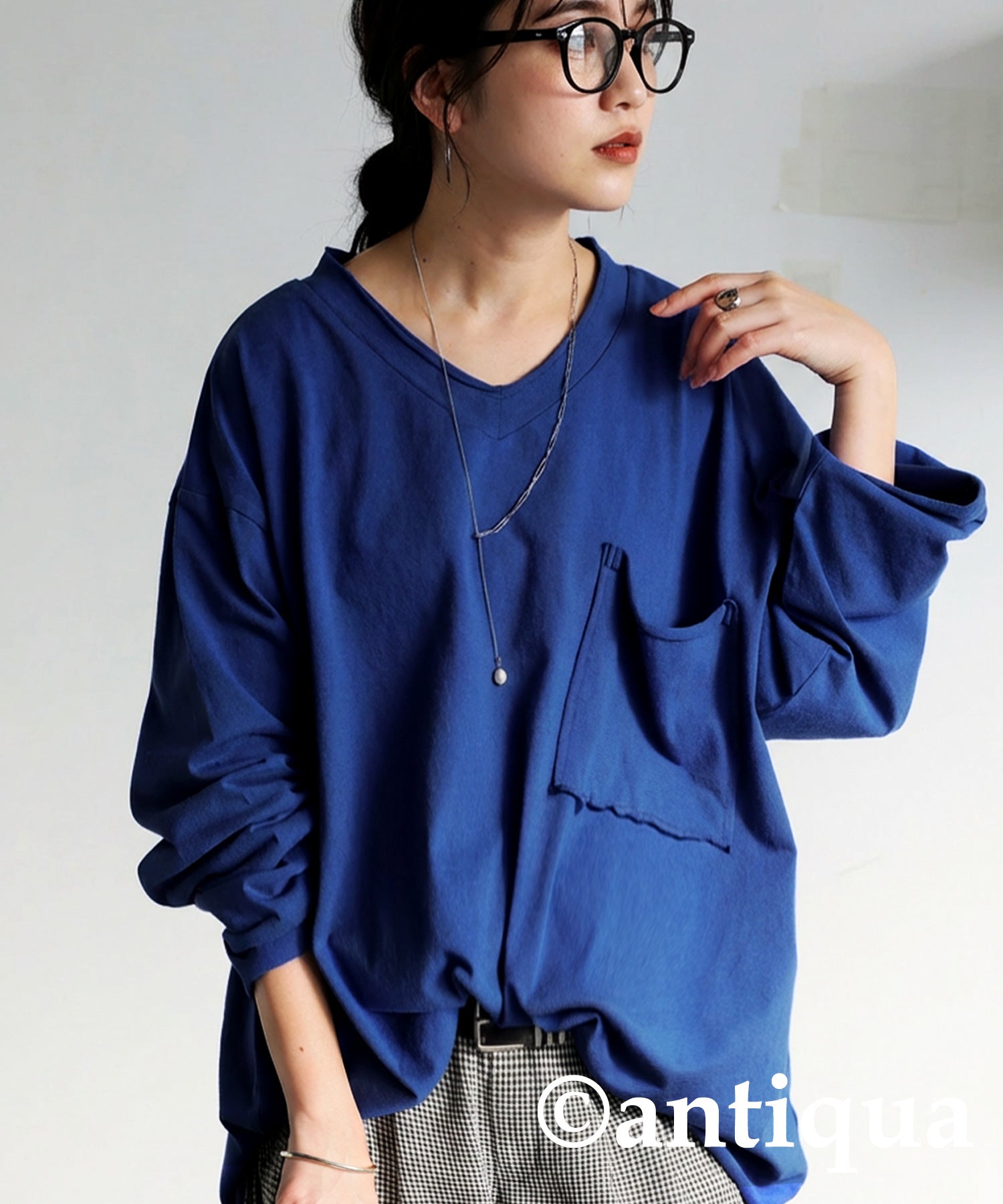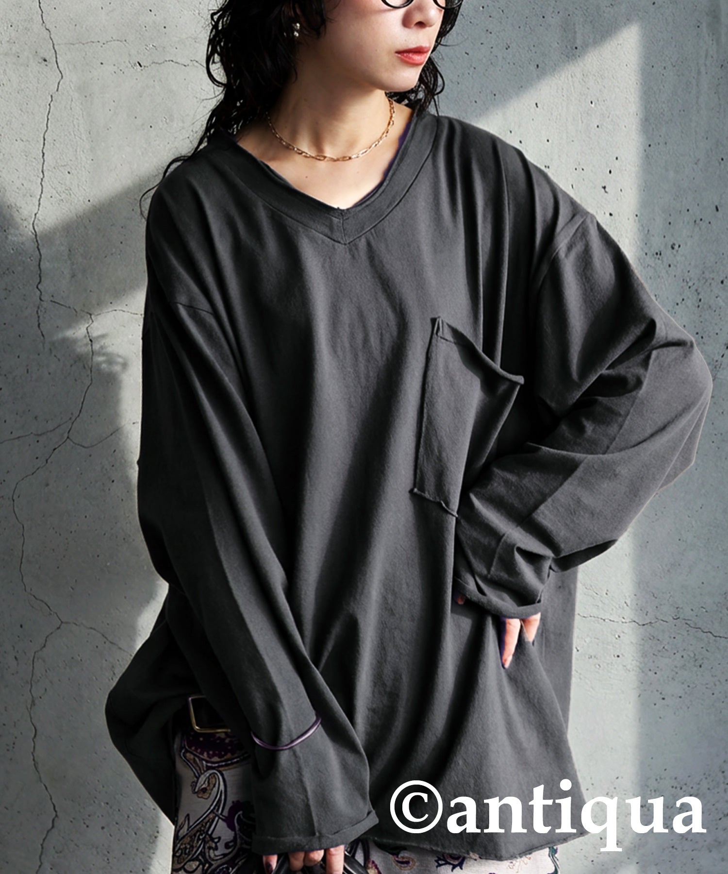 Cut-Off V-Neck Long T-Shirt Ladies