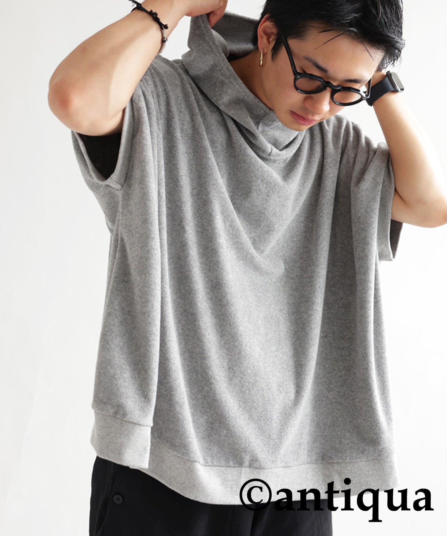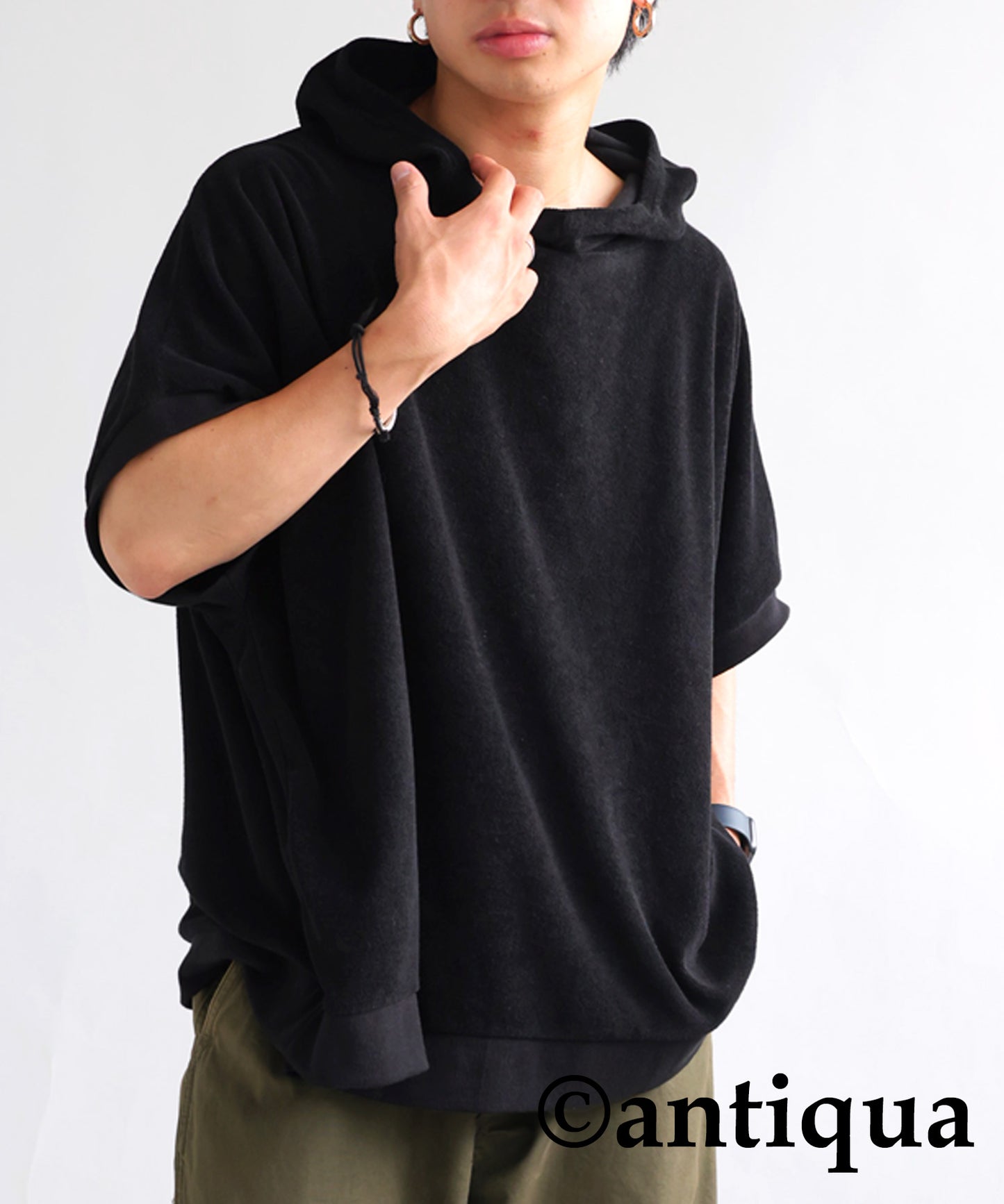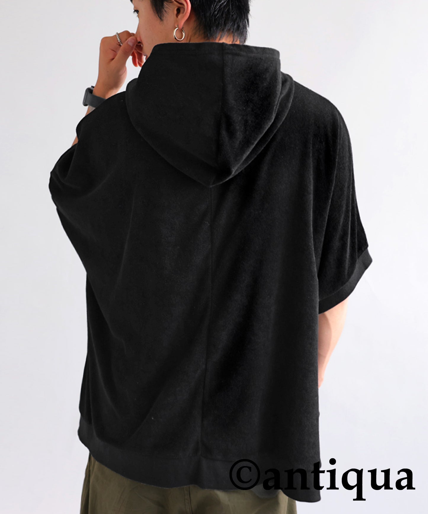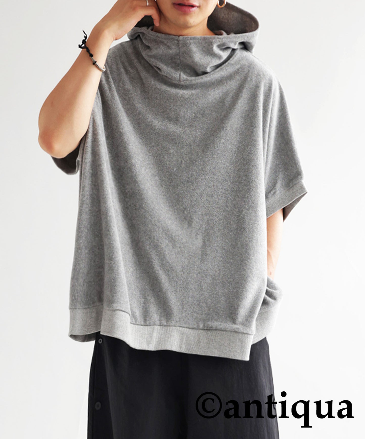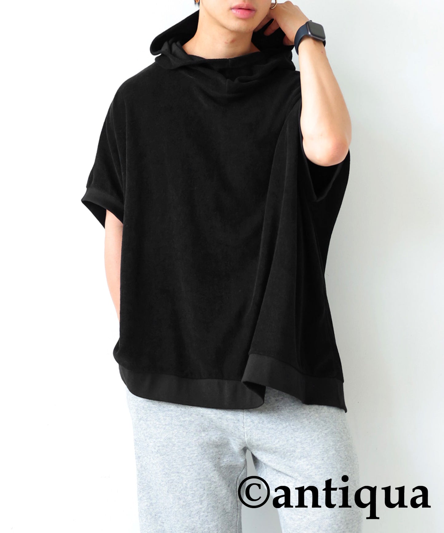 Pile fabric short -sleeved hoodie Men's