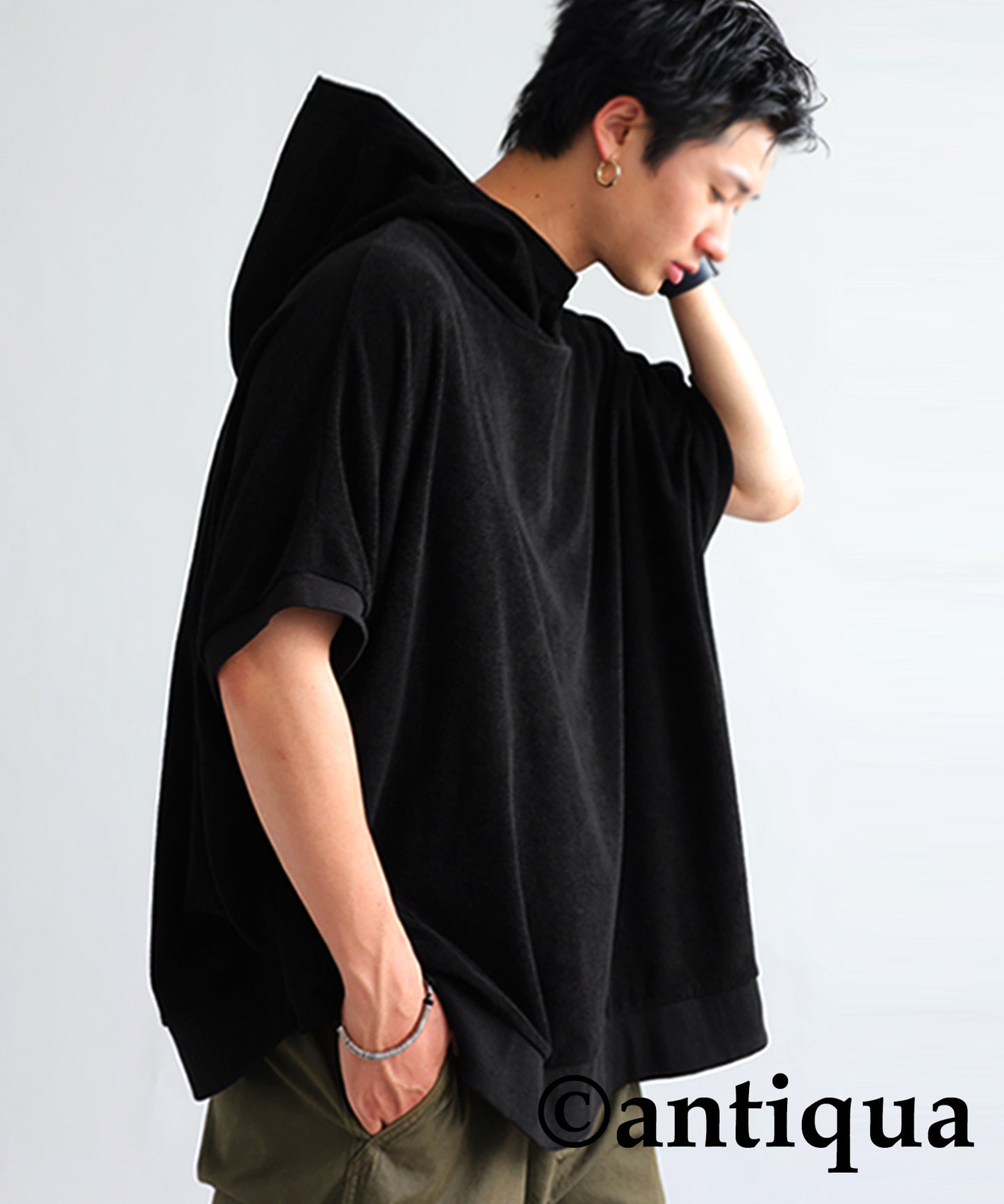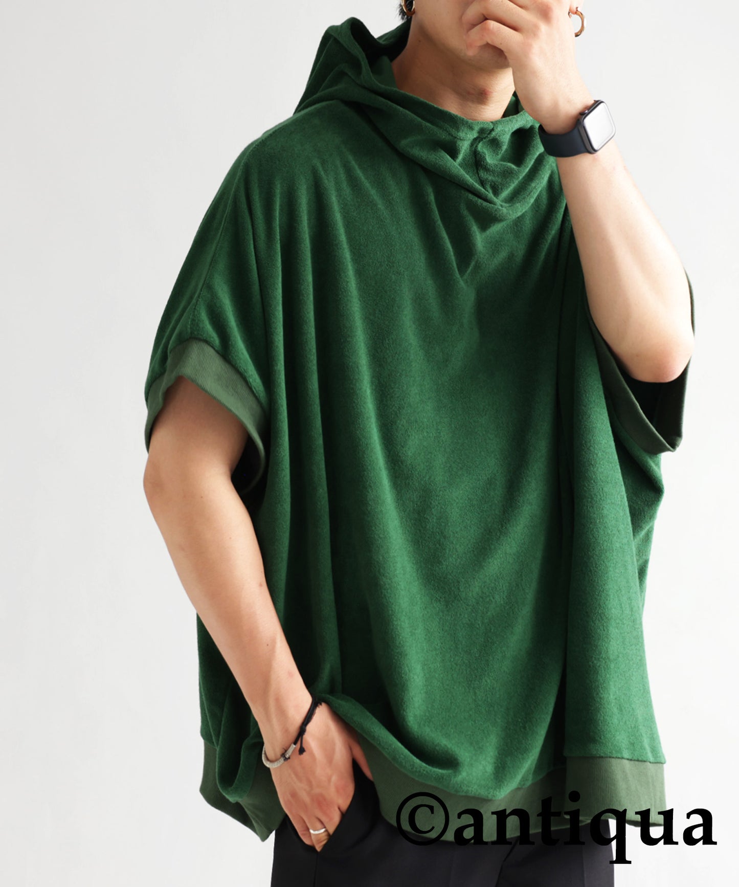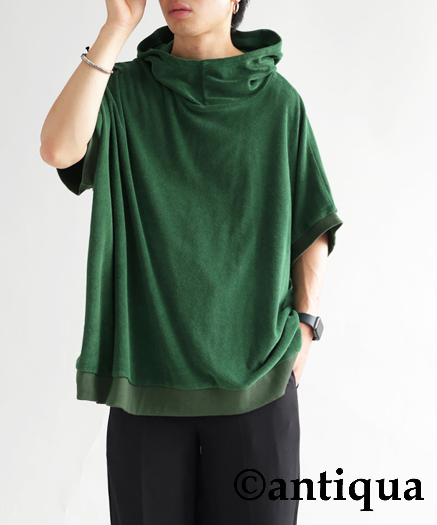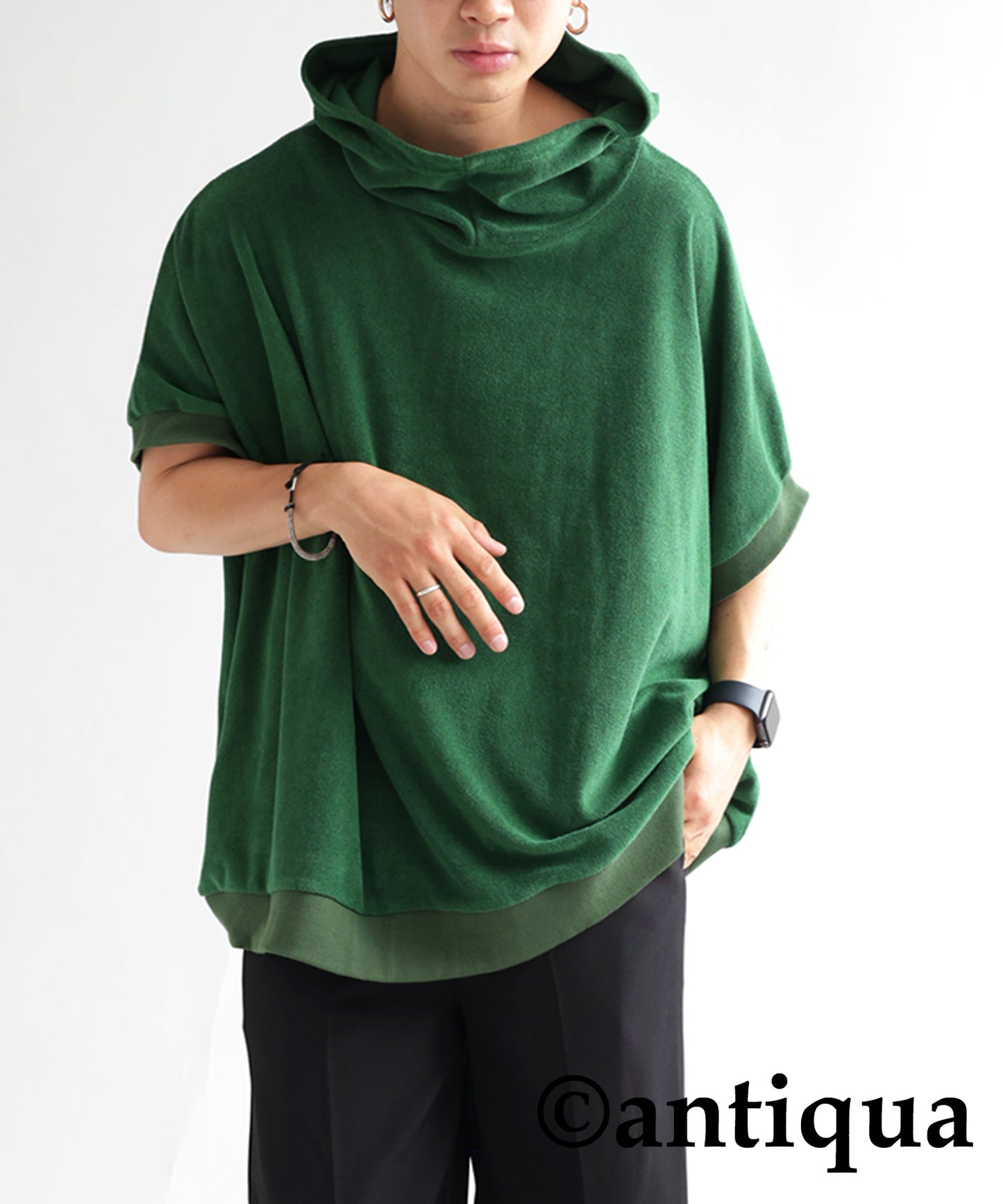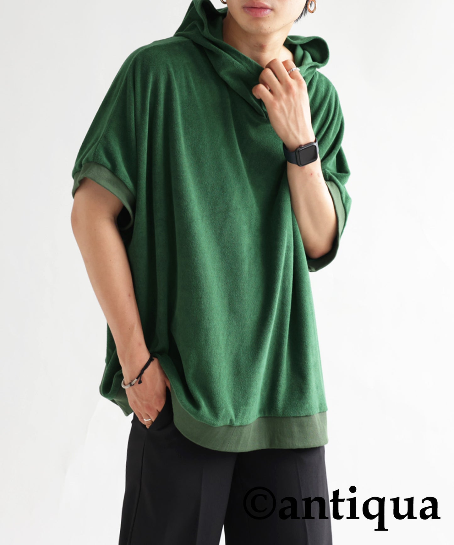 Pile fabric short -sleeved hoodie Men's