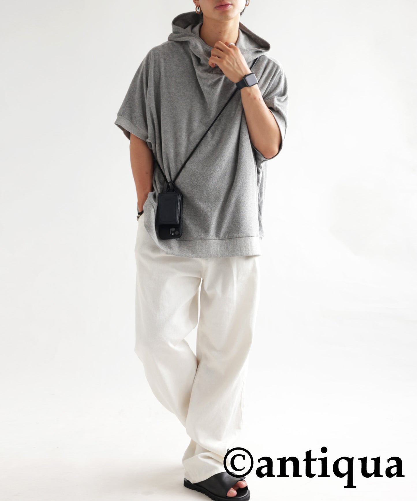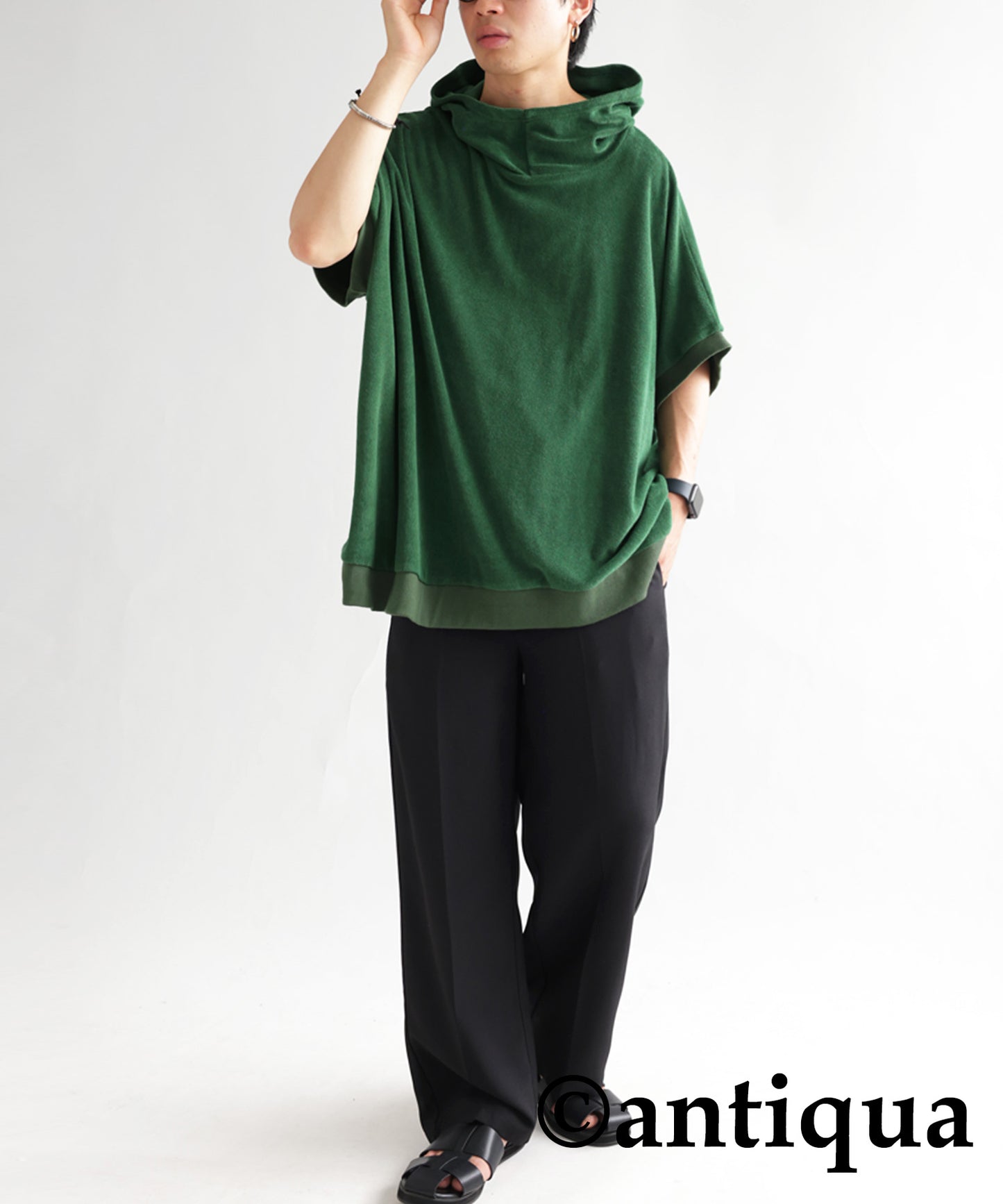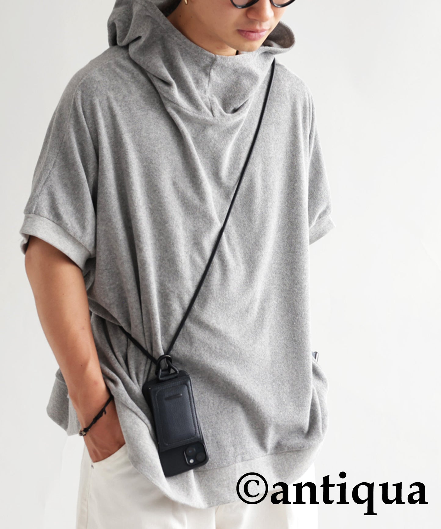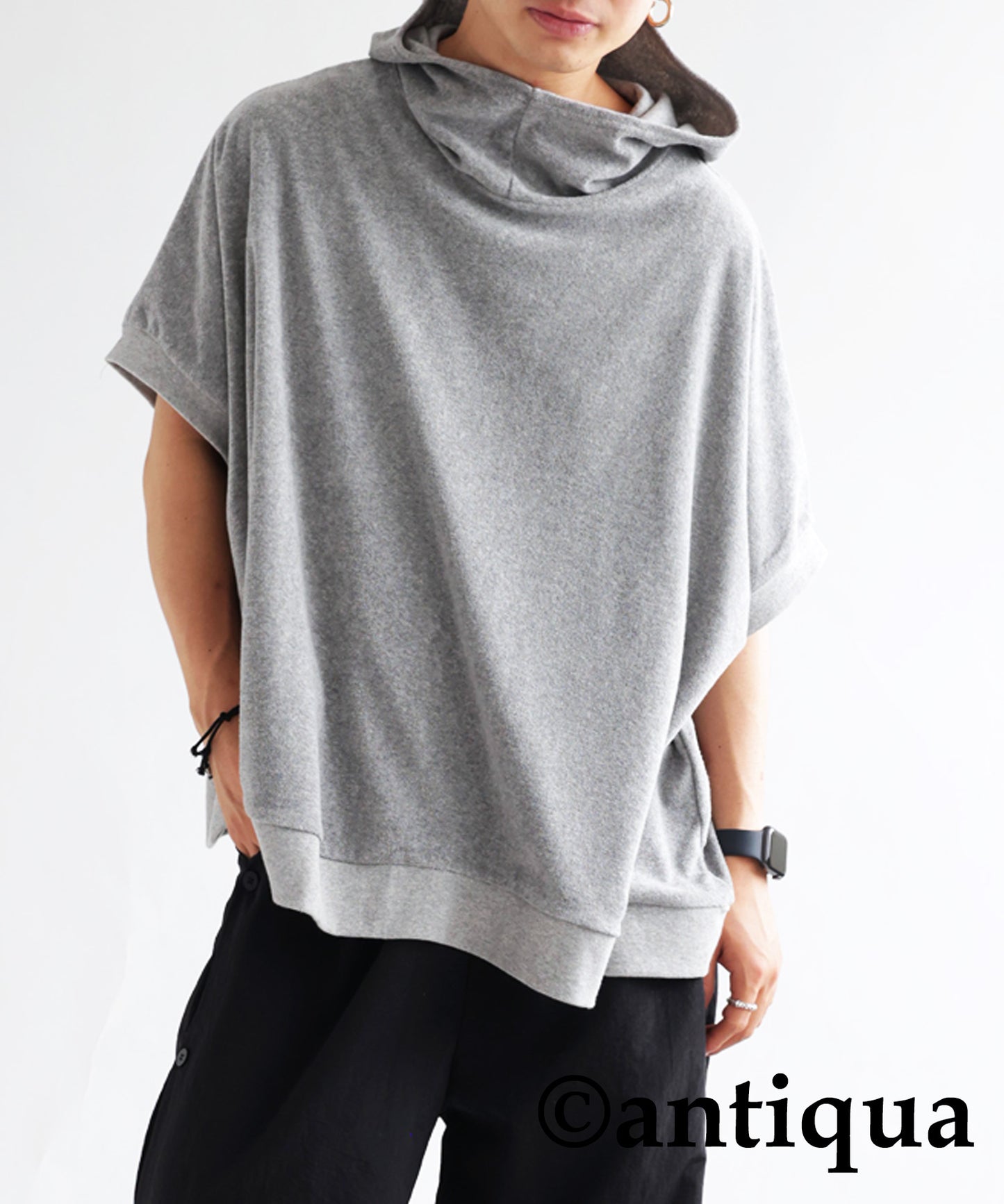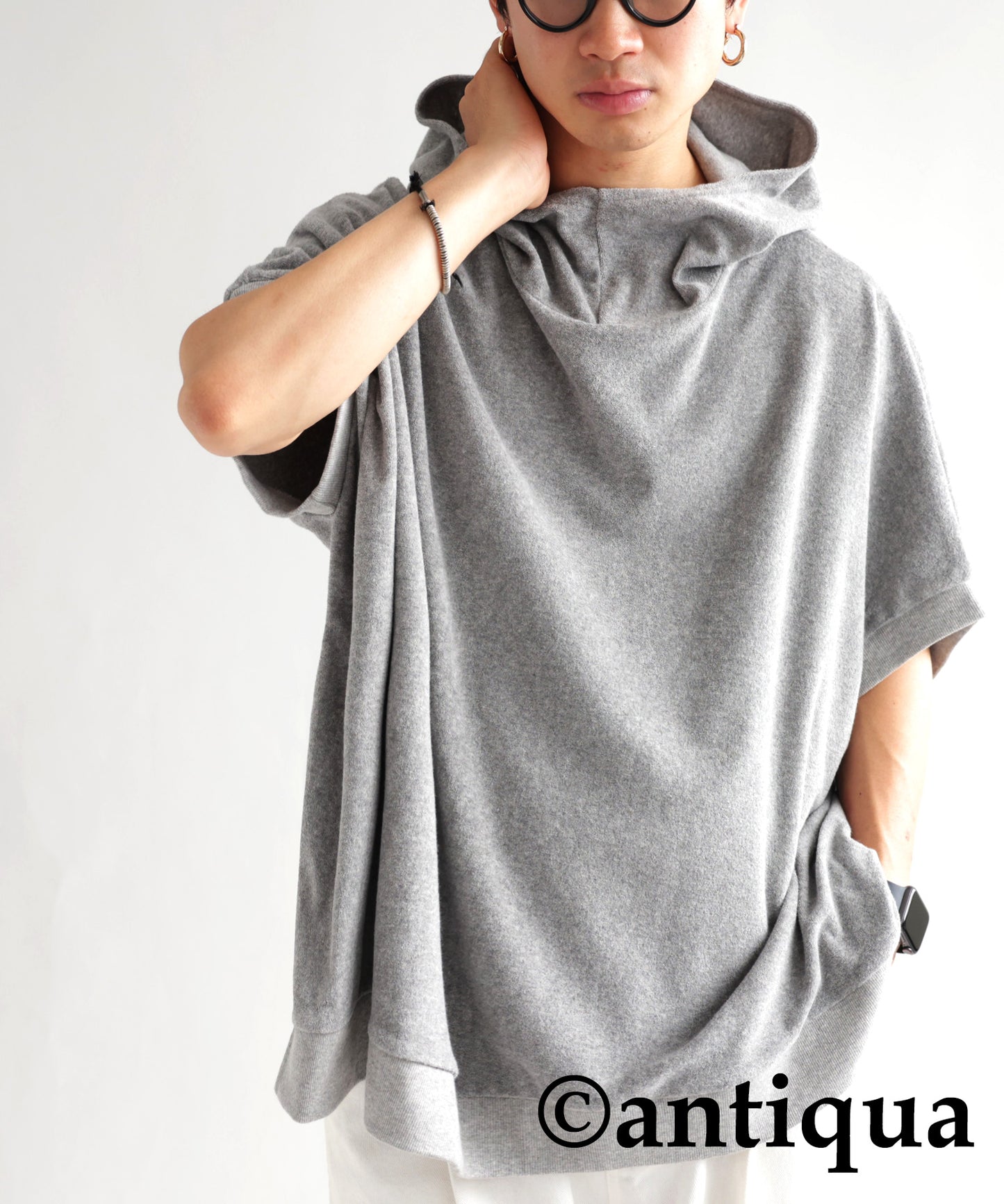Pile fabric short -sleeved hoodie Men's