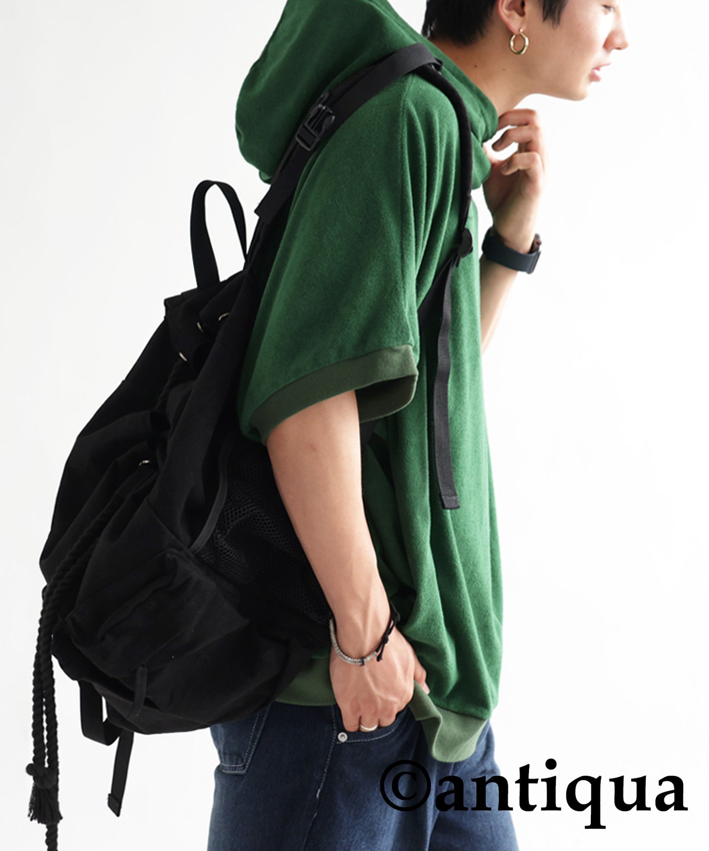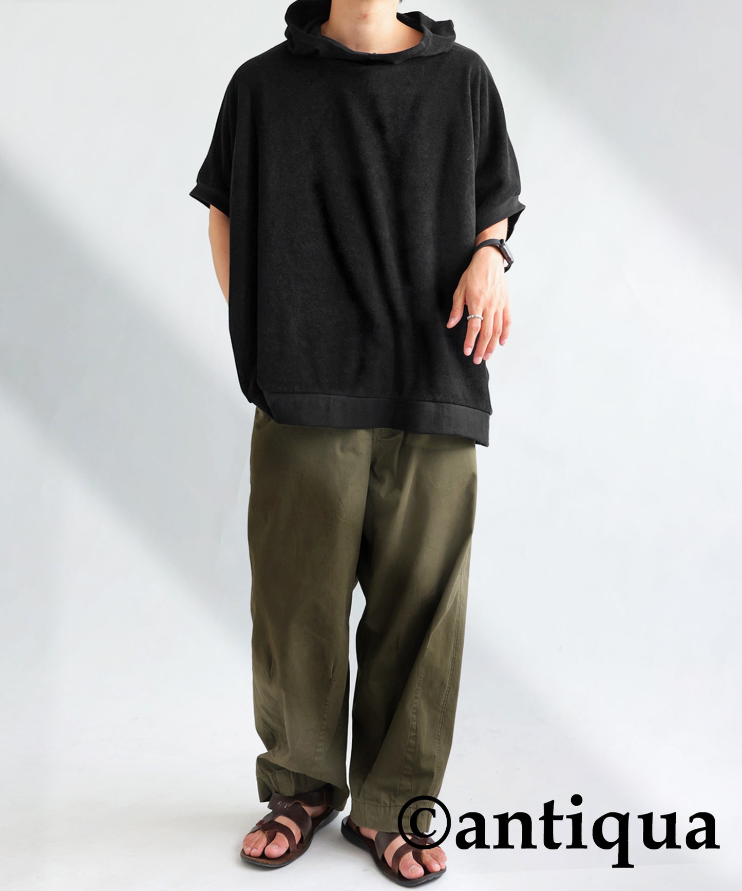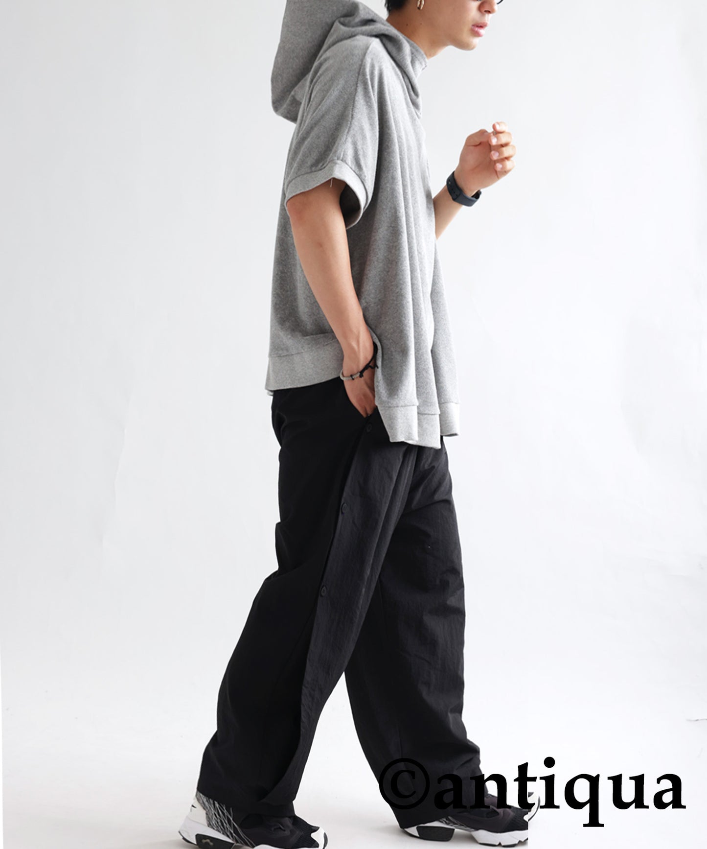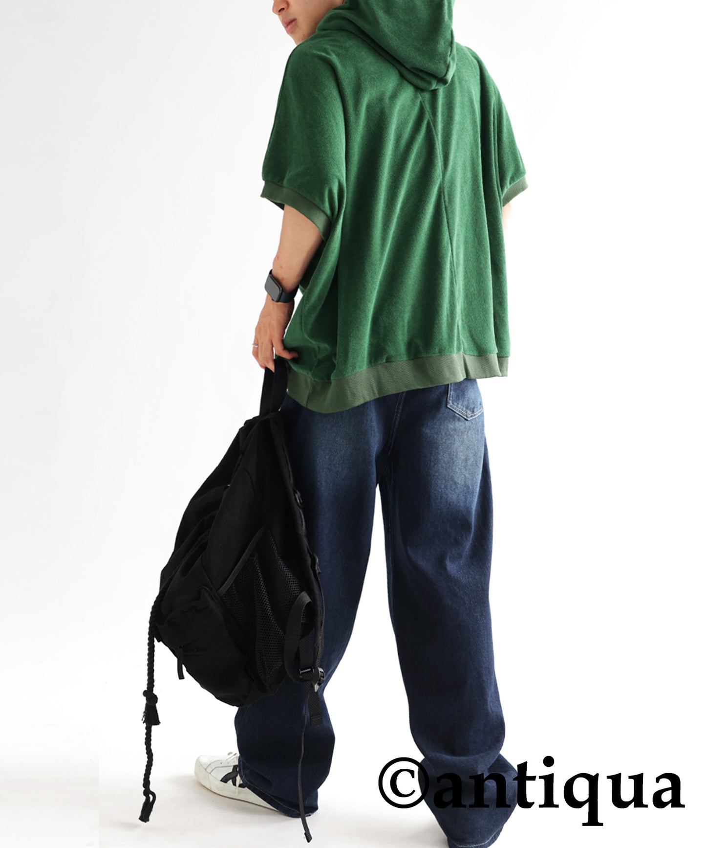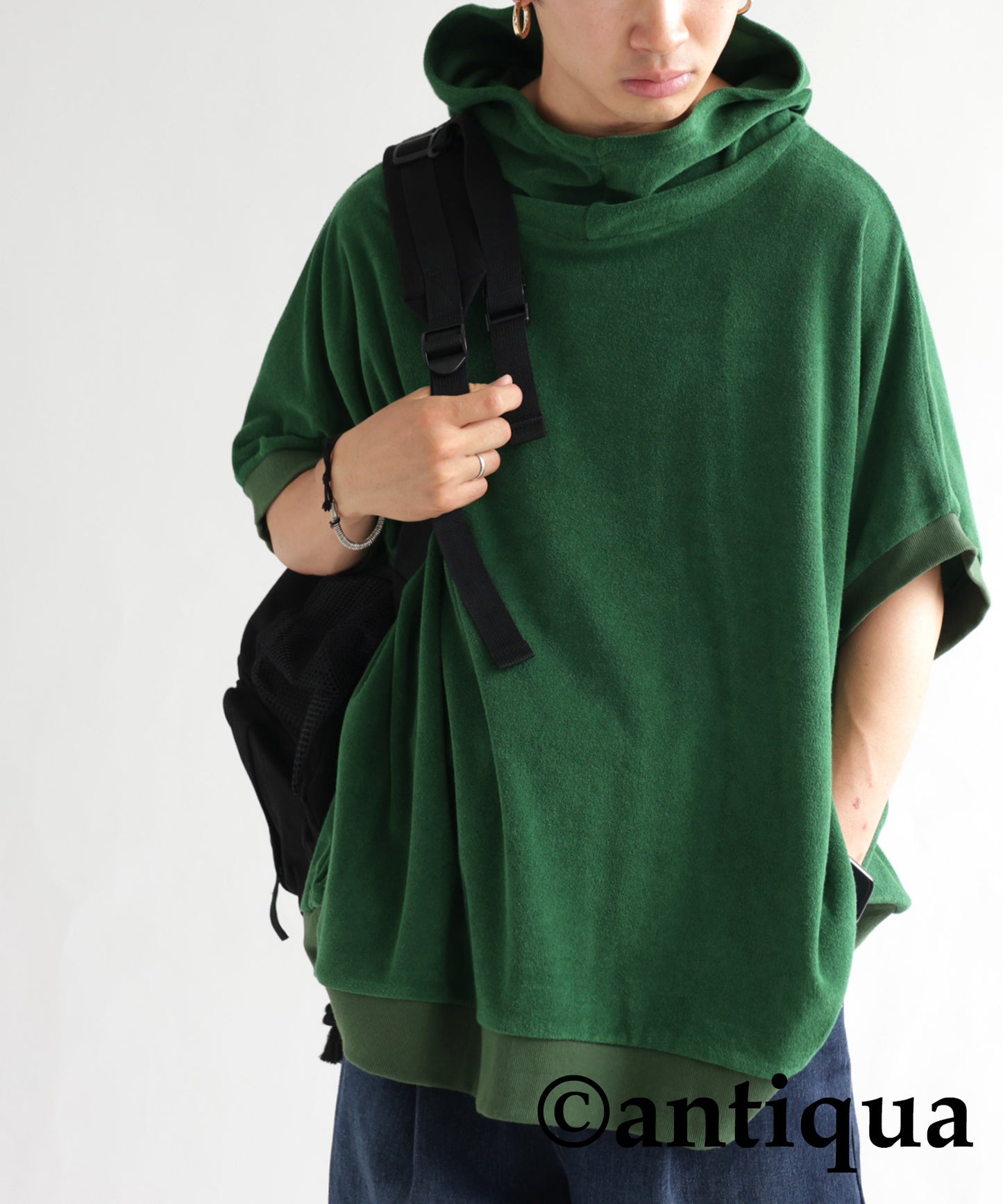 Pile fabric short -sleeved hoodie Men's
