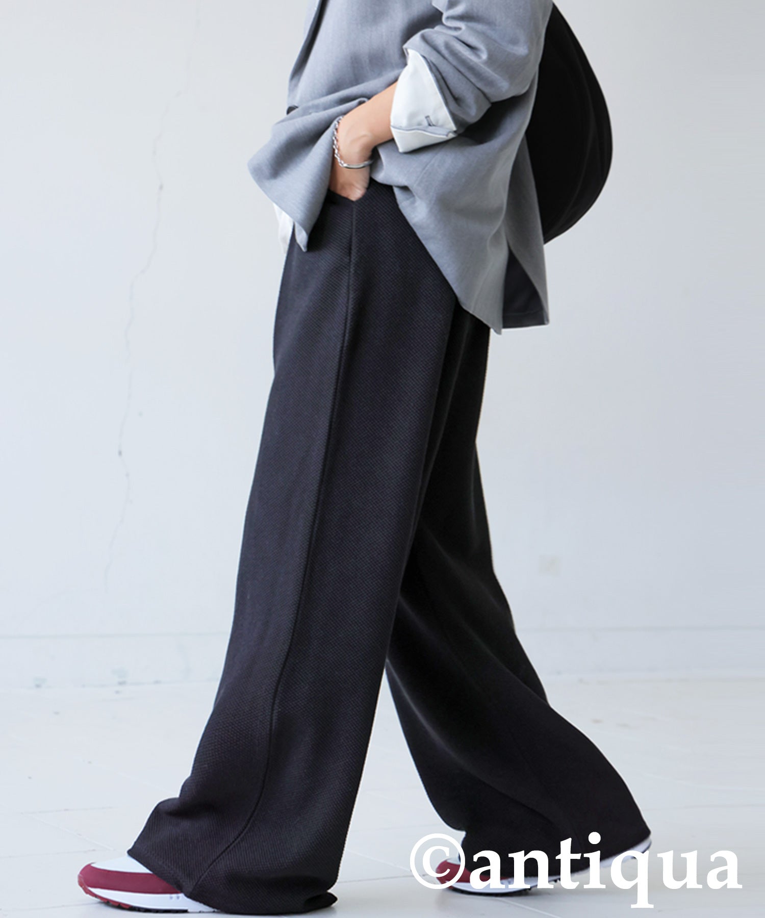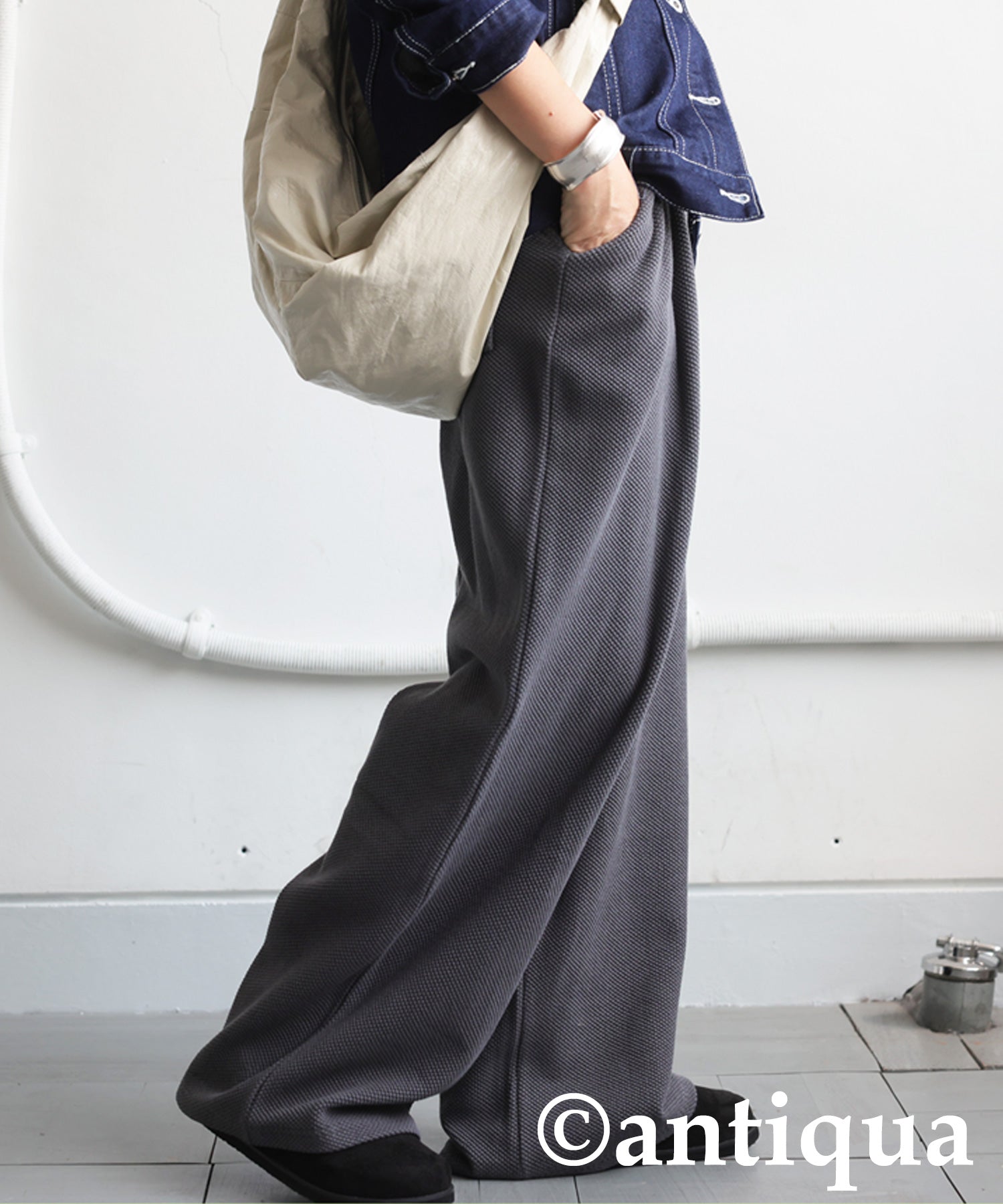 Waffle Knit Wide-Leg Pants Ladies