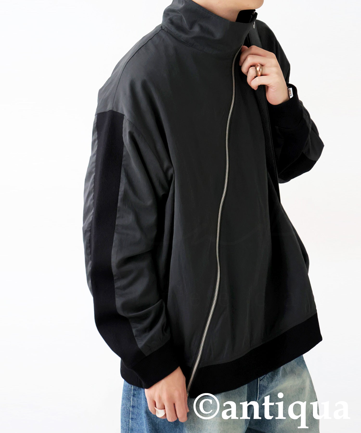 Diagonal Zip Color-Block Line Blouson Men's