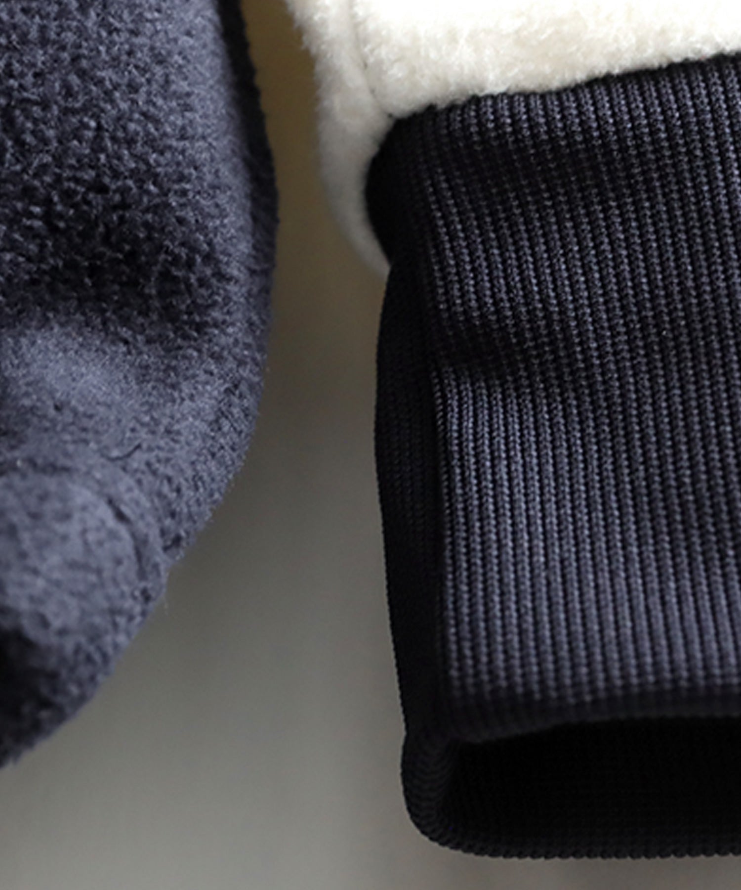 Body: 100% Polyester; Rib: 93% Polyester, 7% Polyurethane